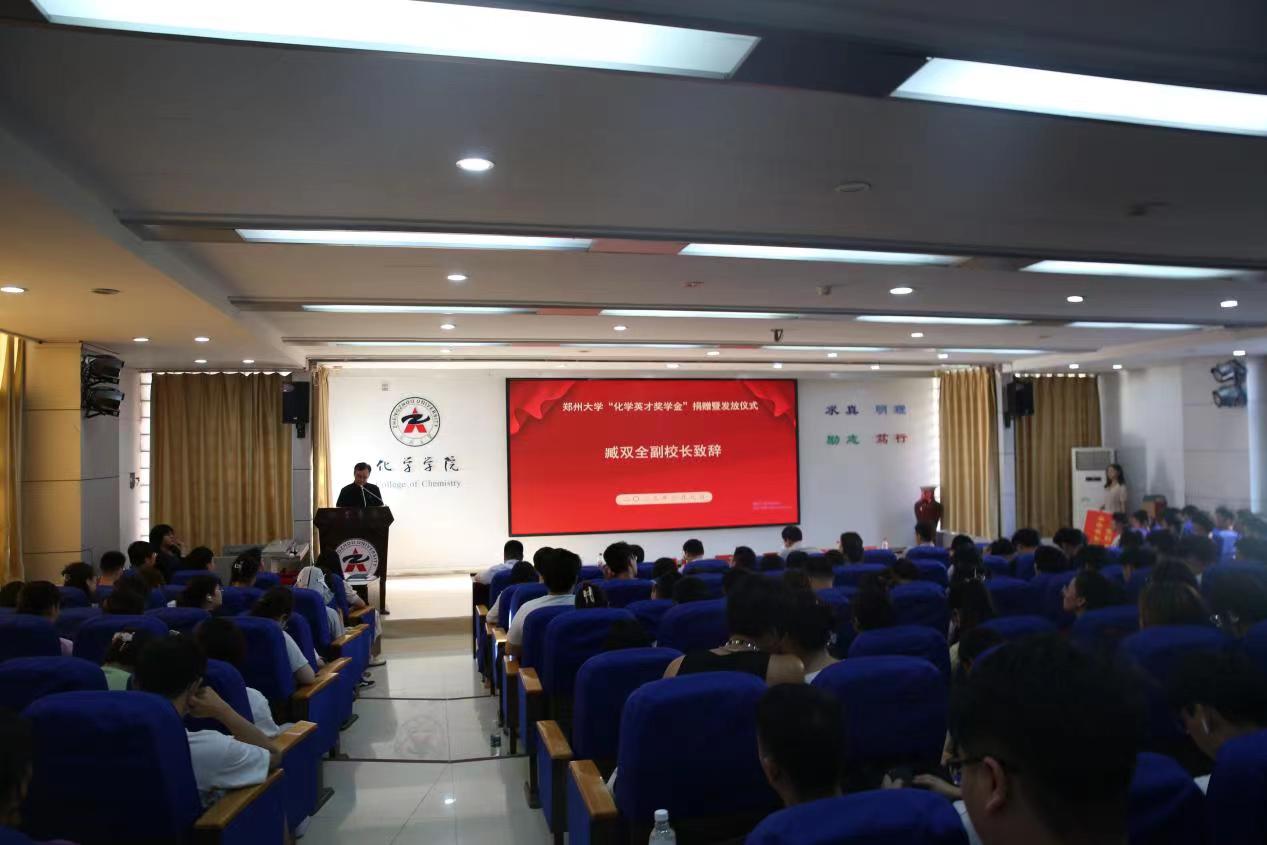 近日,pp电子官方网站“化学英才奖学金”捐赠暨发放仪式在化学学院举行。中国科学院理化技术研究所孔祥玉研究员、中国科学院理化技术研究所教育处招生办主任邱波,学校学术副校长臧双全出席。对外联络办公室、教育发展基金会、化学学院负责同志及师生代表100余人参加仪式。