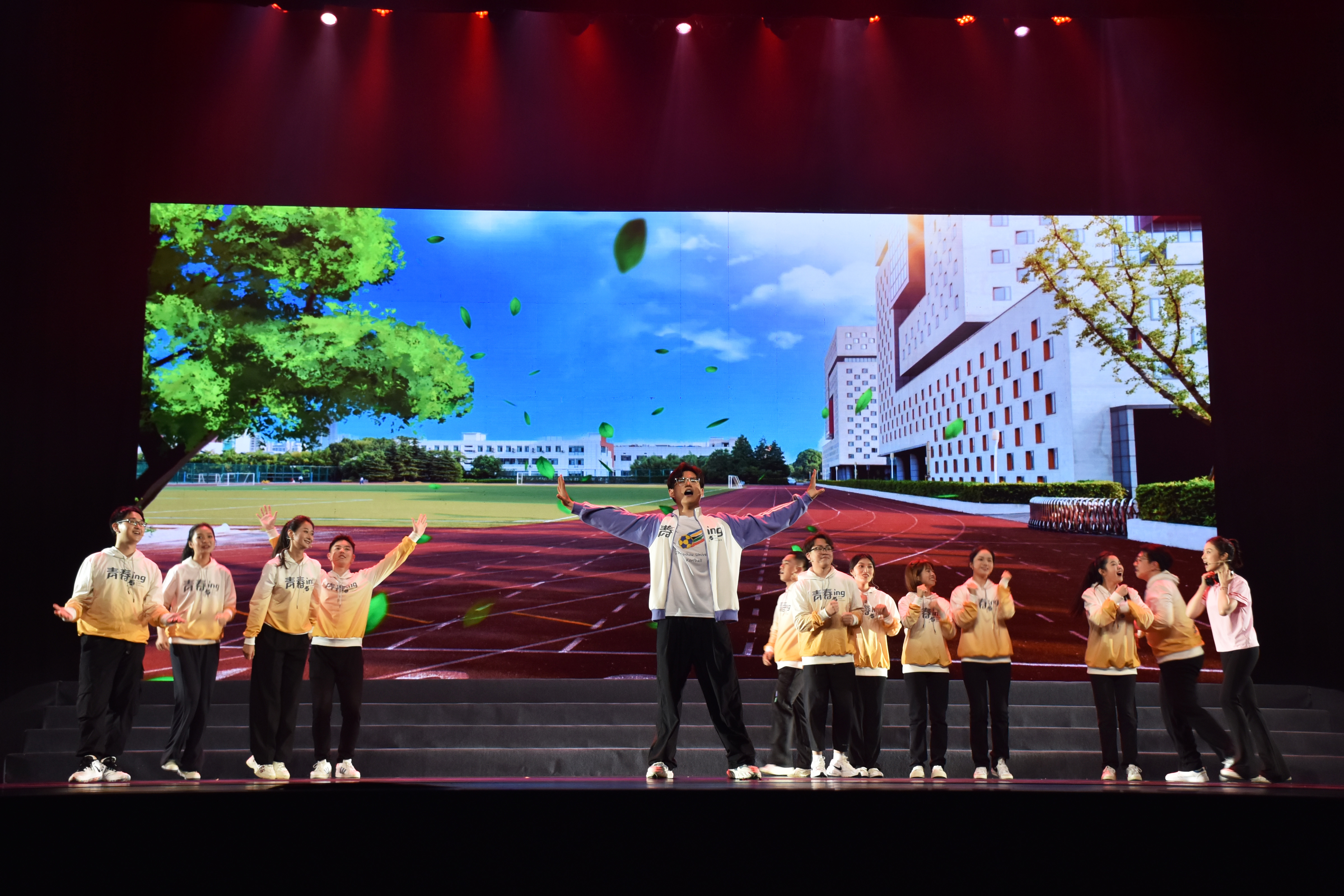 整部音乐剧分为“入学迎新”“抗疫力量”“共同拥抱”三个部分,从主题、形式和表达等多个层面展现当代大学生的主流价值观和社会主旋律。艺术设计涵盖美声、通俗、爵士、摇滚等音乐形式以及古典舞、现代舞、流行舞等多种舞蹈种类。该剧也是一部具有时代意义的励志音乐剧,为学生上了一堂生动的思政课和深刻的美育课,是开展思政育人与实践教学的大胆探索。演出现场高潮迭起、掌声不断,为广大师生带来了一场视觉与听觉的双重盛宴,也进一步激发了广大师生爱党、报国、荣校的热情。