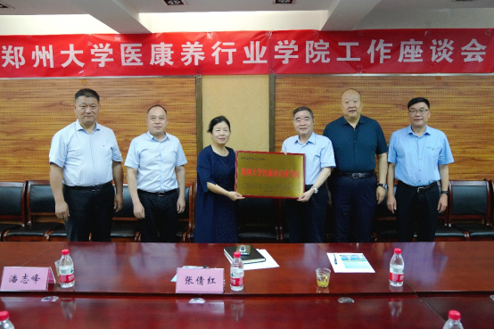 副校长张倩红向pp电子官方网站第五附属医院颁发pp电子官方网站医康养行业学院牌匾