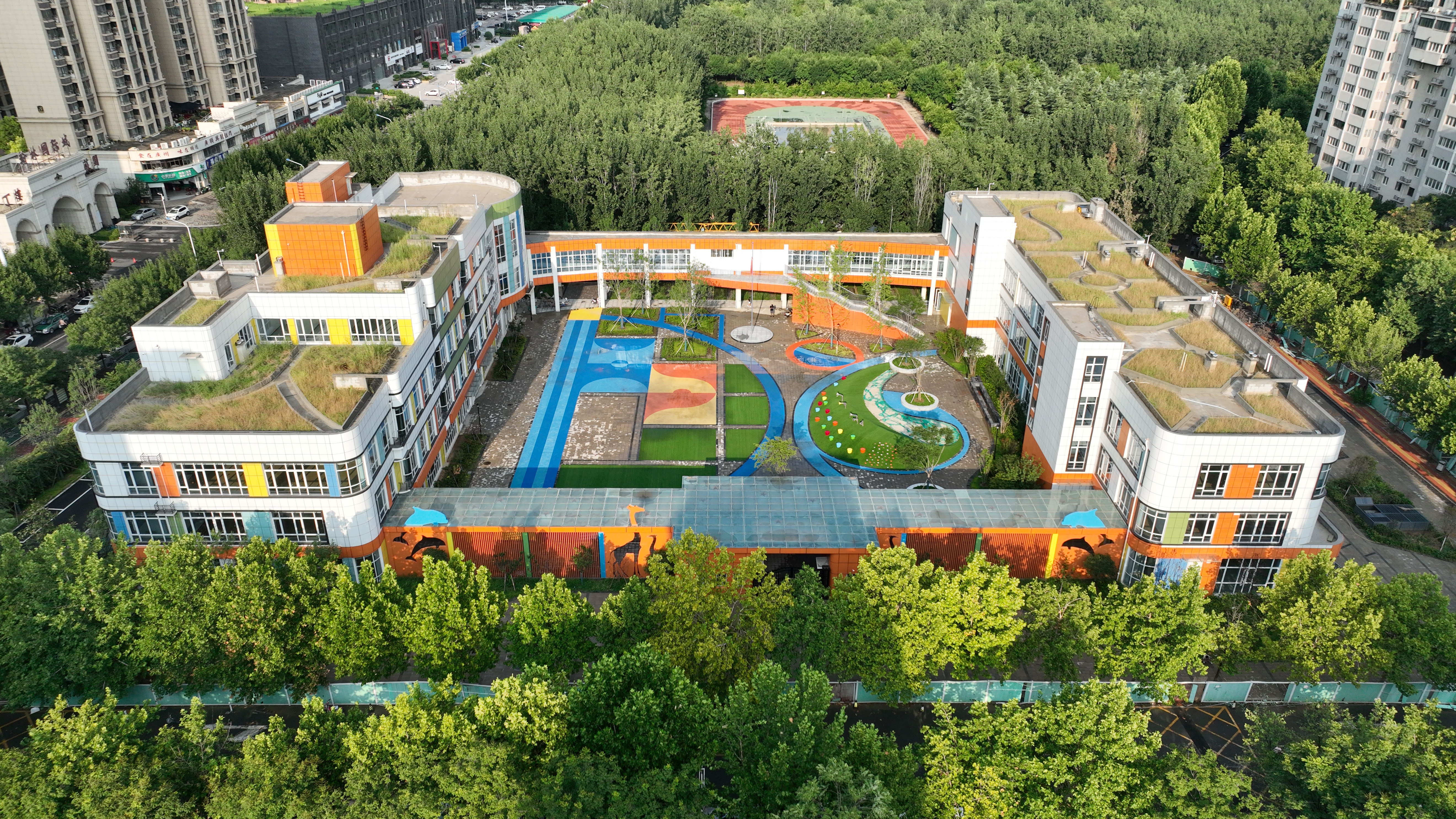 主校区新建幼儿园占地17亩、实际建筑面积8515.81㎡、可容纳21个标准班,以“探索自然、绿色童年”为设计理念,充分考虑幼儿身心健康、教学需求等因素,设计采用南北布局、中心留活动场地,连廊贯通的形式,打造灵动舒适的空间格局。幼儿园预计在秋季学期可投入使用,将有效解决教职工的后顾之忧,满足广大教职工对高质量学前教育的期盼,让大家安心教学科研,真正践行“我为师生办实事”的服务承诺。(李伟华 衡冲 供稿)