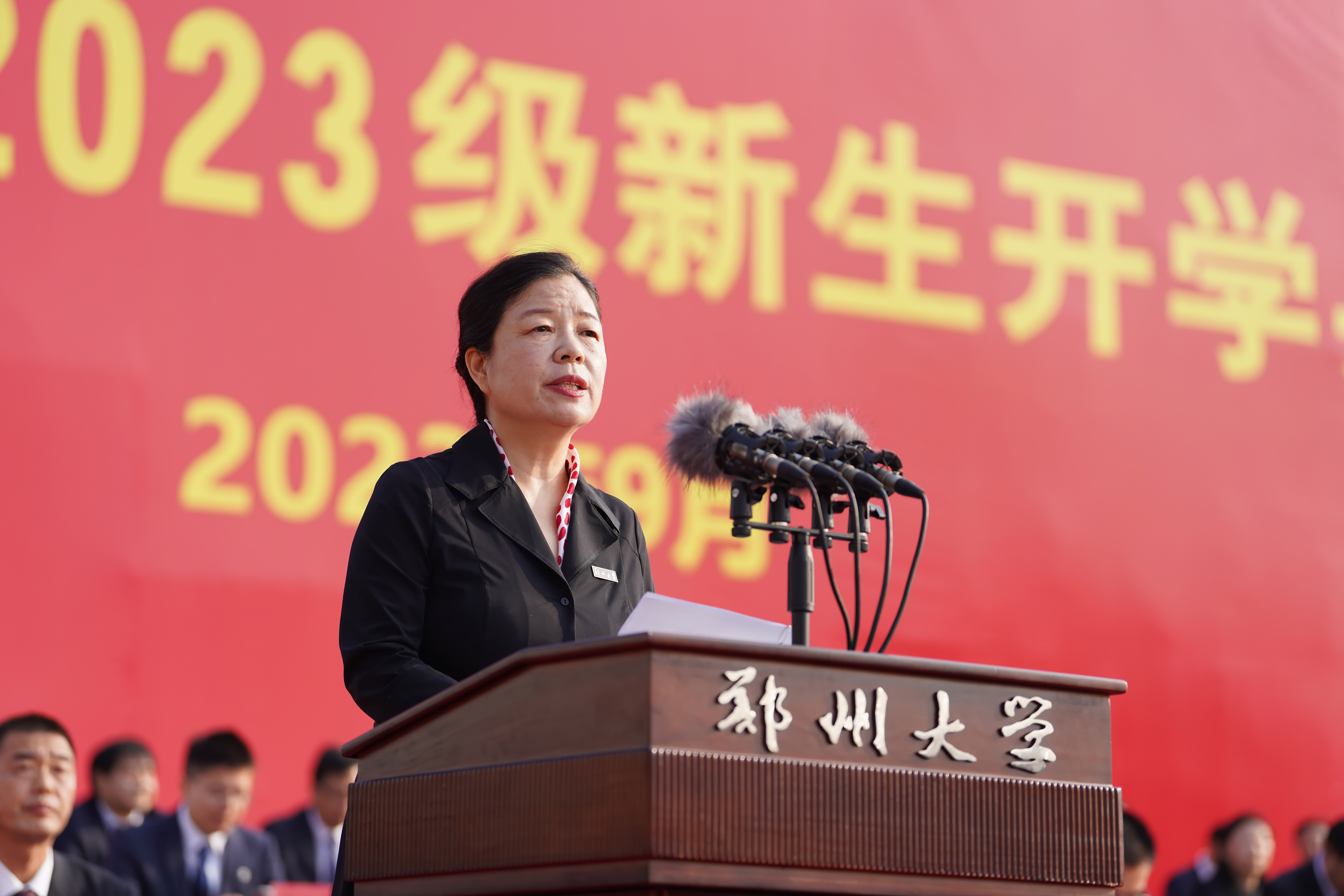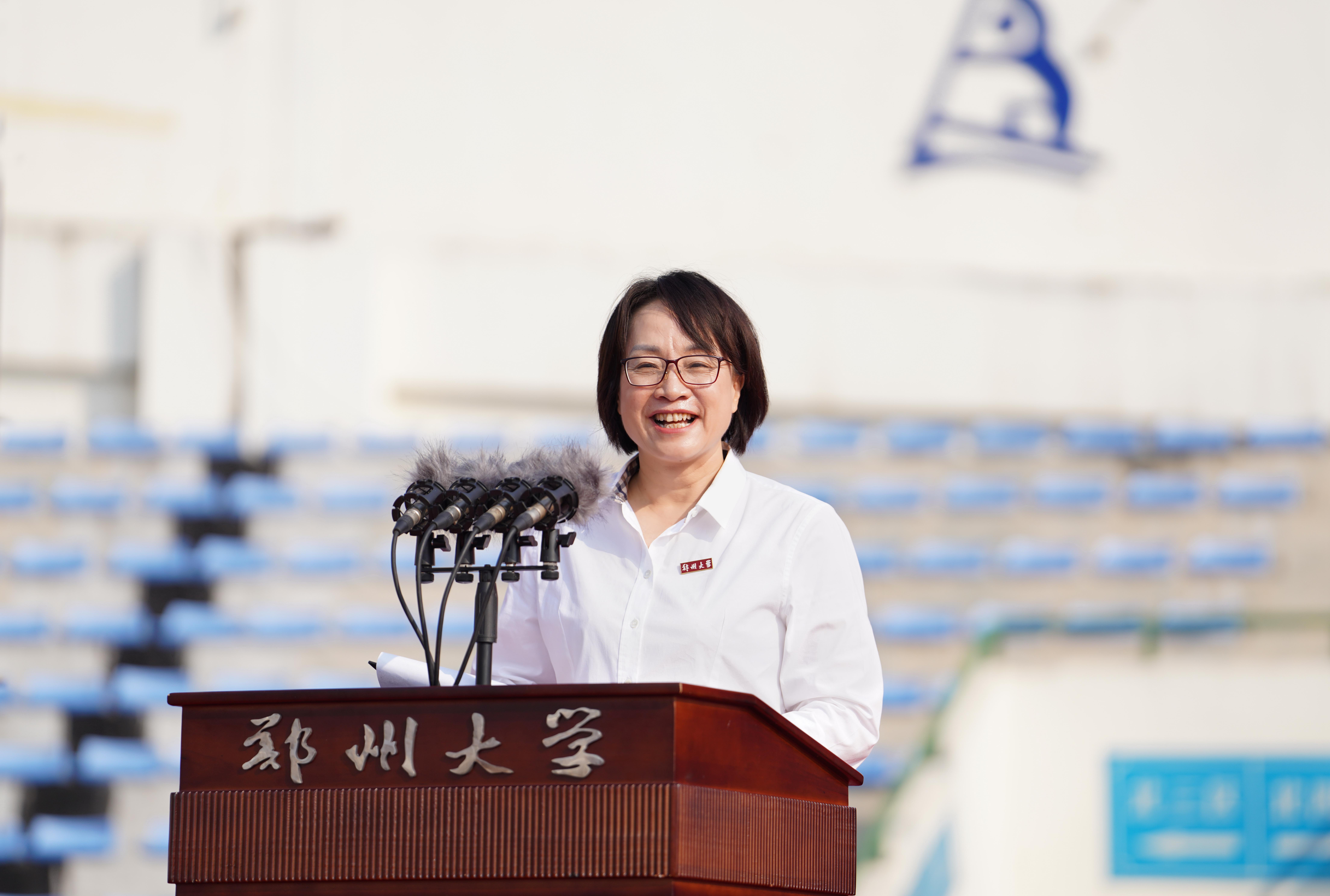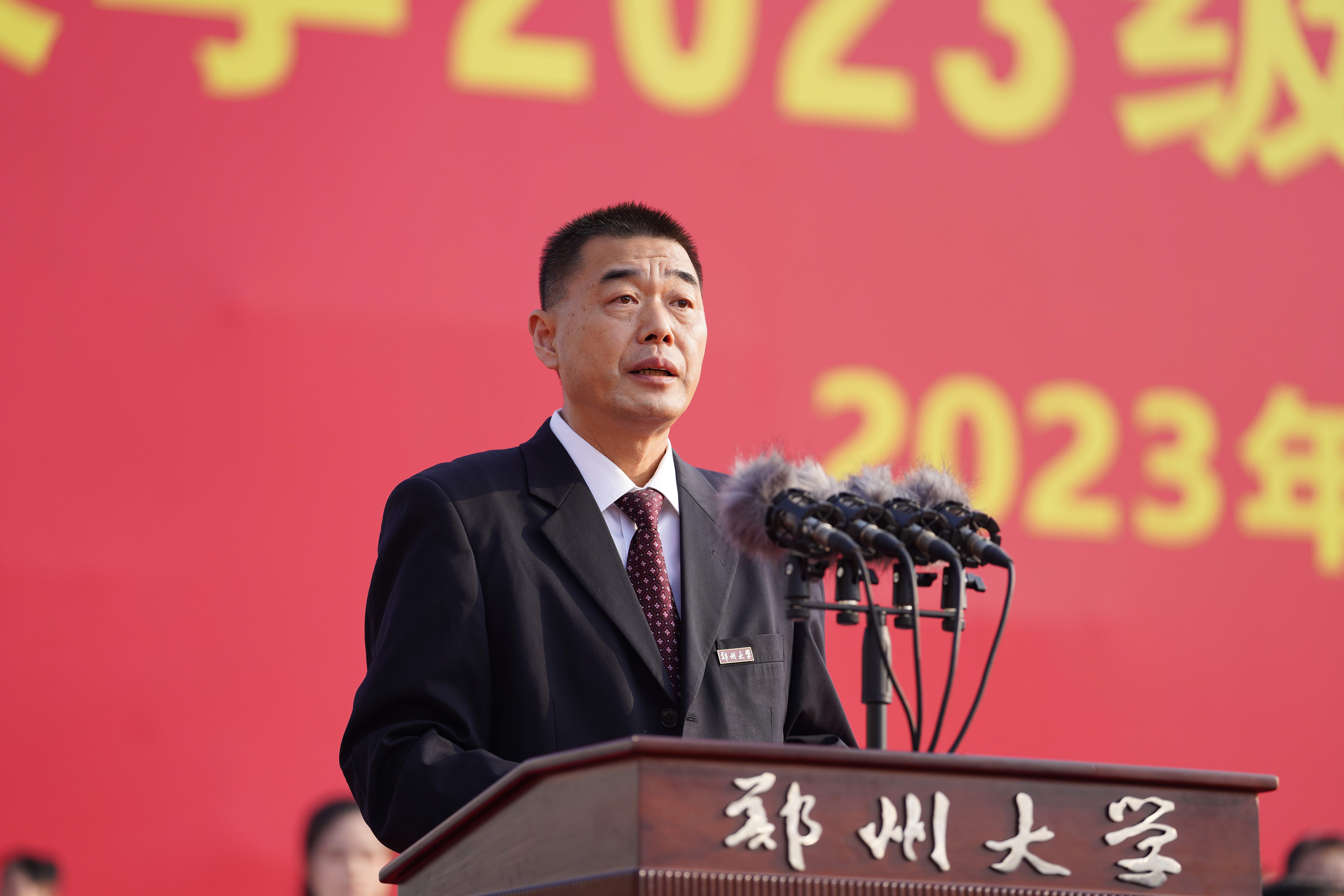 中国科学院院士、校长李蓬作题为《发现自我、勇毅前行》的讲话。她代表学校向2023级10564名本科生、8741名研究生、688名博士生以及来自58个国家的543名留学生表示欢迎,并用“大”和“美”介绍了学校的基本情况,用“历史悠久、站位前沿、名师辈出”介绍了学校的历史与取得成就,她希望同学们用心体会郑大独有的厚重与灵秀,她寄语同学们在pp电子官方网站开启人生新的阶段,上好“大学第一课”,在大学里发现自我、塑造自我、成就自我、超越自我,完成从一名大学新人到栋梁之材的蜕变,鼓励同学们认清自己的人生坐标,树立前行的奋斗目标;发现自己的使命,坚定前行的信念;发现自己无尽的潜力,积蓄前行的能力。她指出,国家的前途,民族的命运,人民的幸福,是当代中国青年必须和必将承担的重任,她希望同学们怀揣星辰大海,发现自我、勇毅前行,以昂扬的姿态去迎接未来,在实现中国梦的伟大征程中展现郑大人的时代风采!