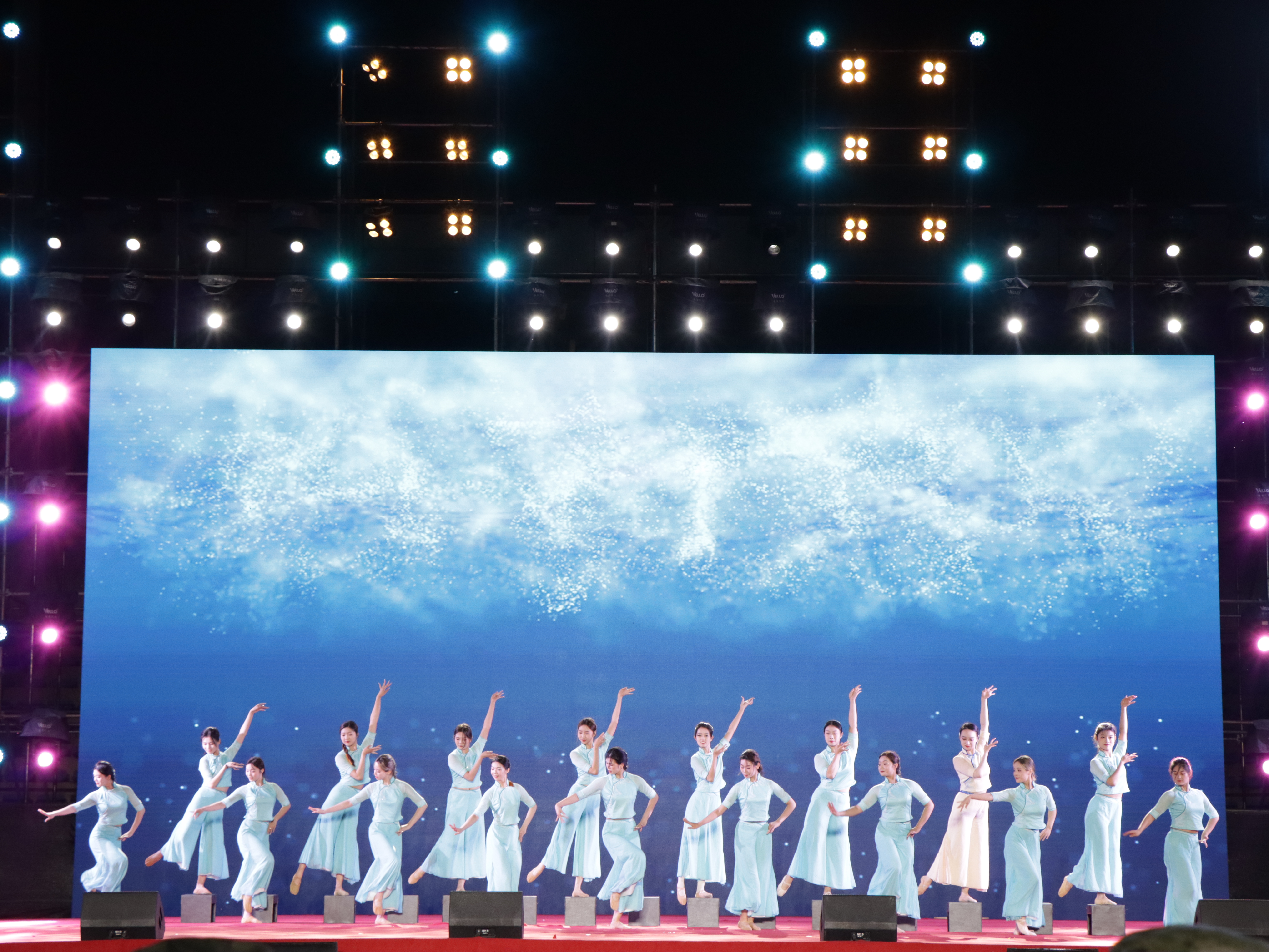 晚会共分为“逐梦郑大,扬新帆”“多彩青春,展新颜”“壮丽河山,绘新篇”三个篇章。节目编排贴近青年人特点,激情澎湃,活力四射,富有时代气息。通过歌舞、合唱、武术、戏曲、相声、器乐等形式,营造积极向上、开拓进取的浓郁氛围,充分展现了郑大学子的青春风采与蓬勃朝气。来自杨根思部队教官们的功夫展示动作行云流水,拳拳到肉,令人惊叹不已;舞蹈《碇步桥水清悠悠》《采薇》旋转跳跃间流淌出多彩的生命力量;群口相声《青春宣讲员》在欢声笑语中展现郑大人对学术知识的追求和向往;国风戏歌《山河雄心》、豫剧《金水河》精彩唱段赢得满堂喝彩;武术表演《武韵四海》刚柔并济,惊艳全场;朗诵《向祖国报告》用满腔激情催人奋进;一首耳熟能详的《我爱你中国》更是引起全场合唱,将火热气氛推至顶点。台上红旗飘扬,台下灯光闪耀,伴随着音乐节拍挥舞的荧光棒,犹如一道流动的光带,在夜幕中灿若星河。