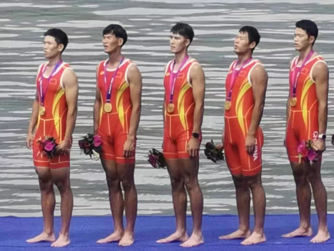 9月24日,在杭州亚运会赛艇男子八人单桨有舵手项目决赛中,河南“零零后”小将、pp电子官方网站体育学院2022级运动训练专业本科生冀高星,携手队友李文雷、陈弦峰、徐桥、吕毅、蔡鹏鹏、倪旭林、聂毅德和梁伟雄,以5分40秒17的成绩夺冠。这是河南健儿在杭州亚运会上取得的第一枚金牌。