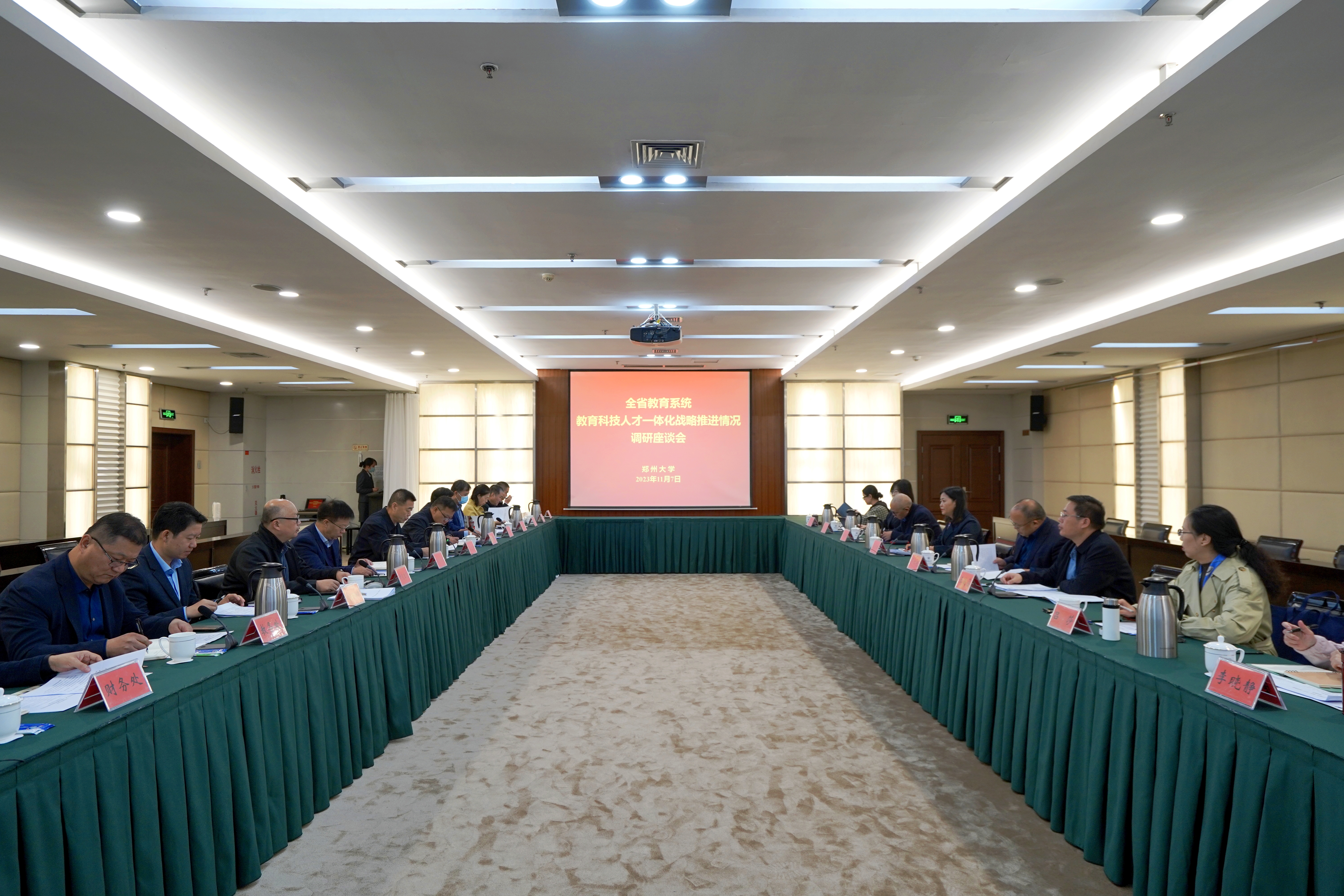 11月7日,省委教育工作领导小组秘书组调研组一行8人,来校调研教育科技人才一体化战略推进情况。学校召开专题汇报会,调研组组长、河南省教育科学规划与评估院院长成光琳听取汇报并讲话,校党委副书记吴宏阳主持会议并致辞,党委办公室,校团委,学术委员会办公室、学位委员会办公室,学科与重点建设处,人事处,教务处,党委学生工作部、学生处,研究生院、党委研究生工作部,科学技术处,社会科学处,财务处,大学生科技园建设管理中心等相关部门负责同志参加会议。