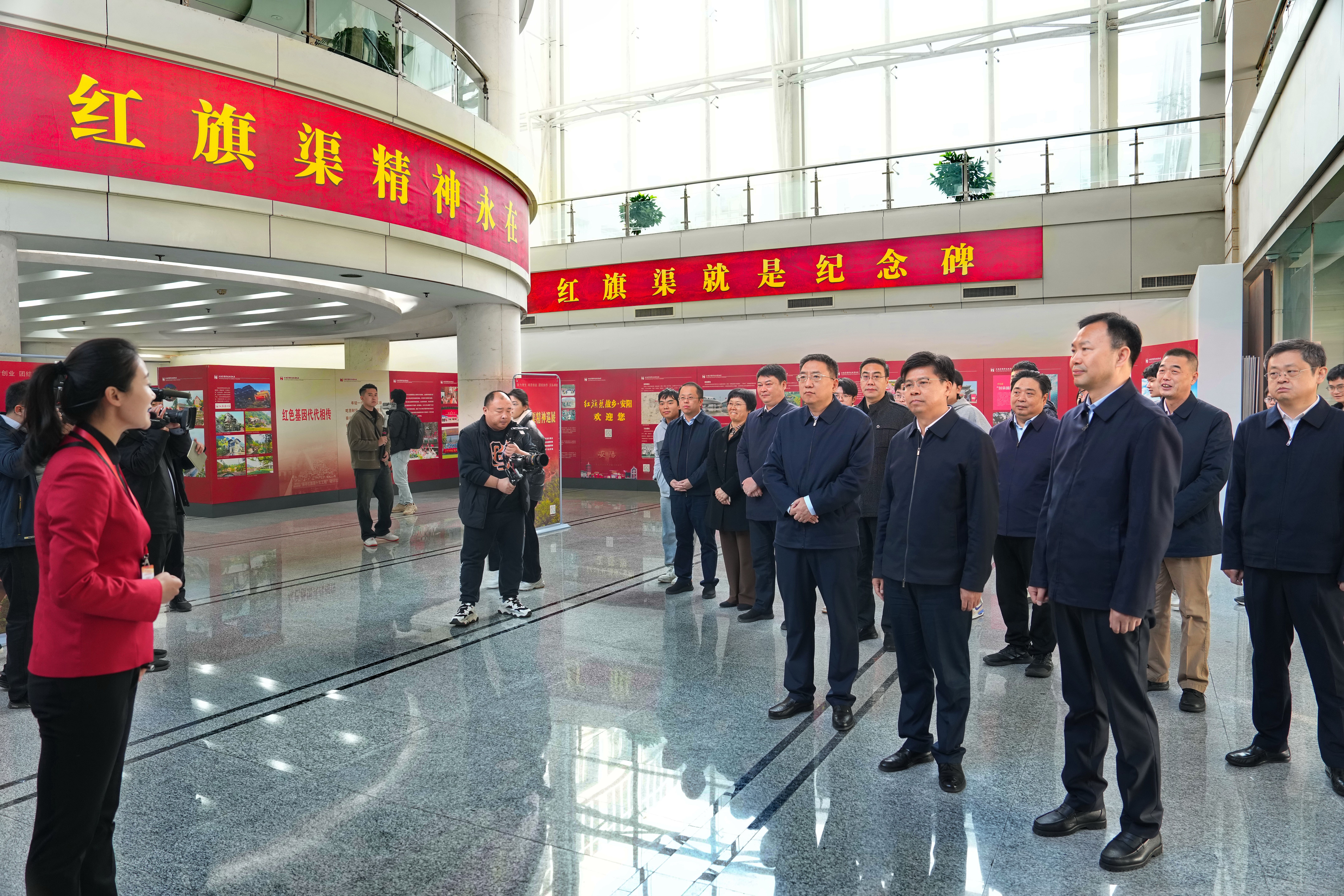 与会领导共同启动巡展活动,并参观展览。启动仪式后,“红旗渠精神”宣讲团成员、林州市副市长李蕾为师生宣讲红旗渠精神。厉励主持宣讲报告会。