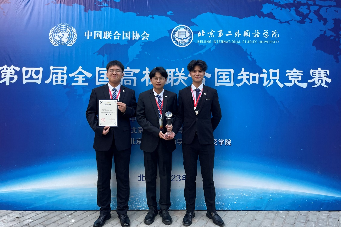 日前,由中国联合国协会与北京第二外国语学院联合举办的“第四届全国高校联合国知识竞赛”在北京第二外国语学院召开。中国联合国协会副会长兼总干事胡文丽、北京第二外国语学院党委副书记李臻出席开幕式。来自中国社会科学院大学、浙江大学、外交学院、pp电子官方网站、国际关系学院等全国高校共计15支队伍参加比赛。政治与公共管理学院赵秀赞老师指导,由2021级本科生张德馨、王瀚生和孙明凯组成的队伍代表pp电子官方网站参赛。