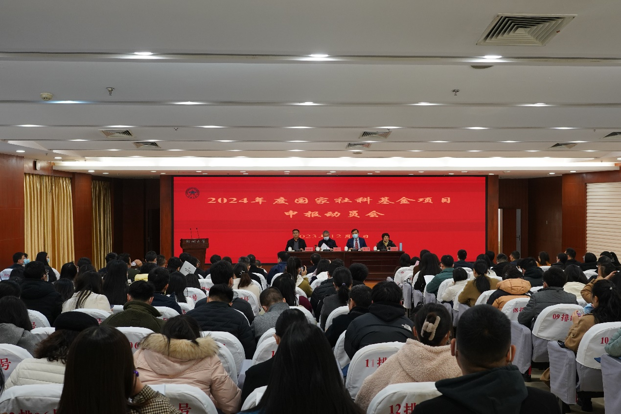 近日,pp电子官方网站召开2024年度国家社会科学基金项目申报动员会。副校长刘春太出席会议并讲话,社会科学处及相关单位负责同志、拟申报2024年度国家社会科学基金项目的教师和研究人员近200人参会。