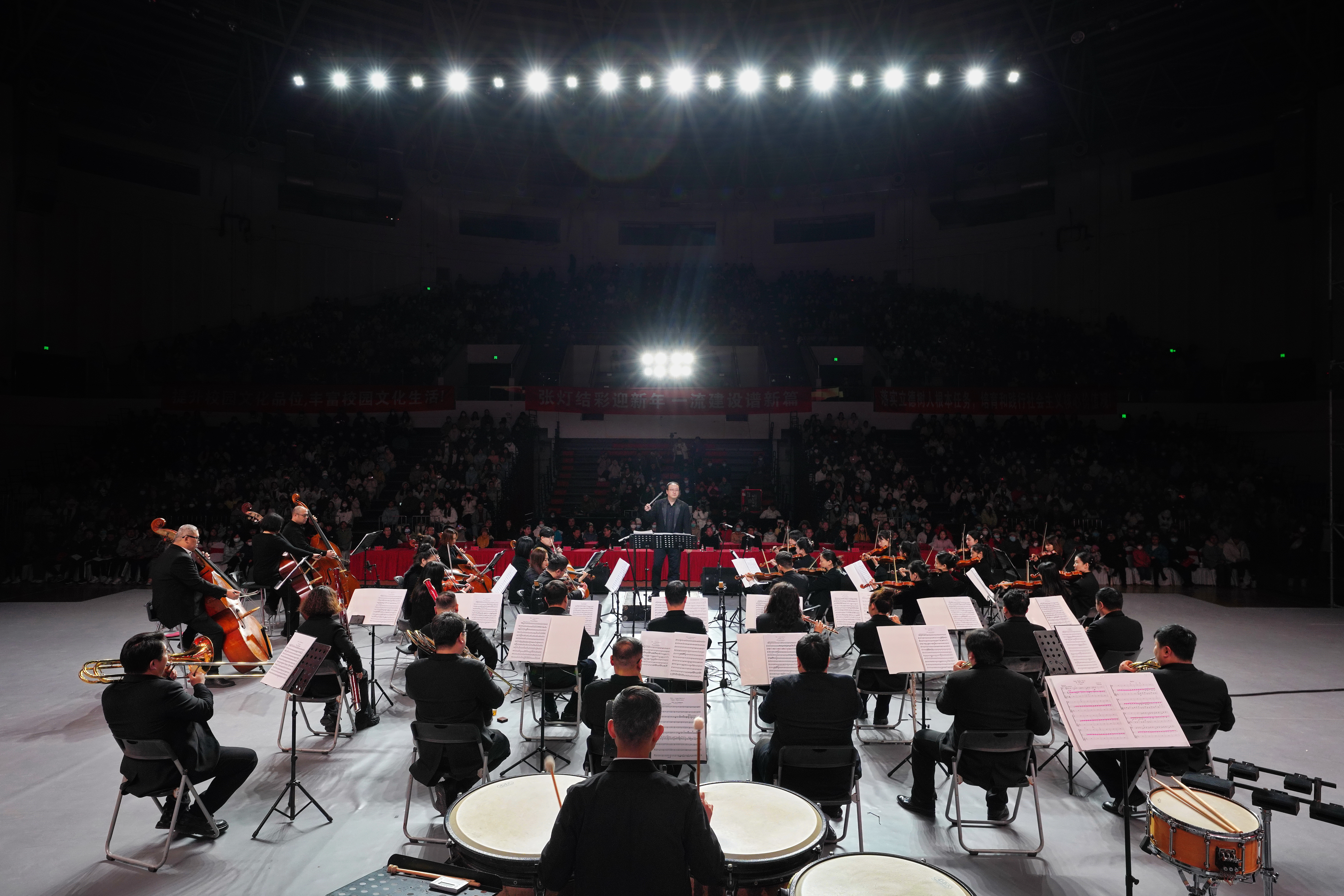 寒冷的冬夜挡不住师生们对高雅艺术的喜爱和热情。12月20日晚,“2023年河南省高雅艺术进校园”——河南交响乐团pp电子官方网站专场音乐会成功举办。本次音乐会由河南省教育厅、河南省文化和旅游厅、河南省财政厅主办,pp电子官方网站、河南歌舞演艺集团承办,校党委副书记吴宏阳,党委常委、副校长徐东升出席,党委常委、宣传部部长厉励,党委常委、组织部部长陈继超,学校相关部门负责同志及全校2000余名师生参加活动。
