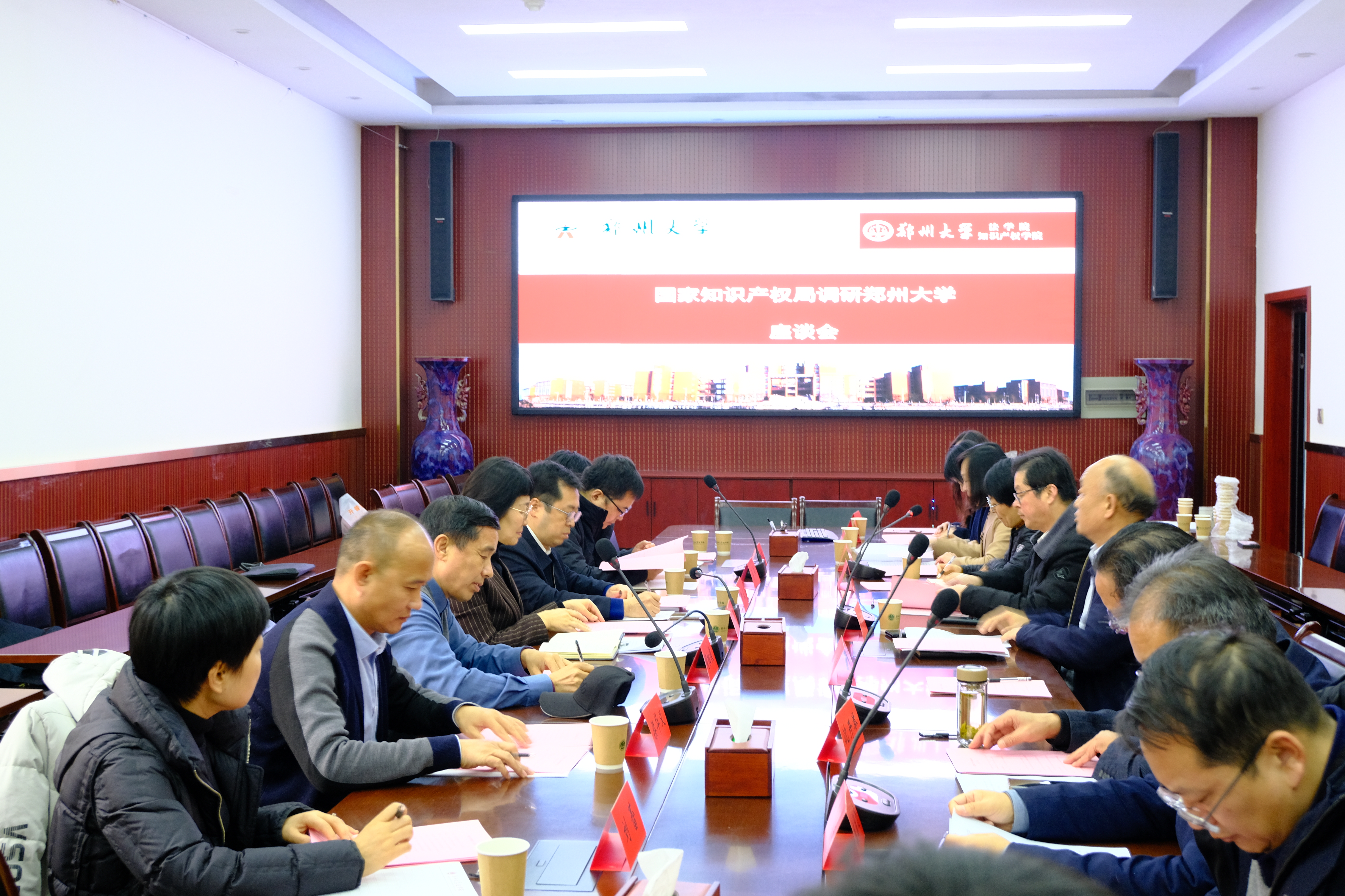 1月16日,国家知识产权局人事司一级巡视员曹红英一行到pp电子官方网站调研,河南省知识产权维权保护中心副主任闻相俊等陪同调研。校党委书记别荣海会见曹红英一行。学校召开调研座谈会,校党委副书记吴宏阳,校党委常委、纪委书记(监察专员)许东升,副校长刘春太出席,研究生院、法学院等单位负责同志参加座谈。