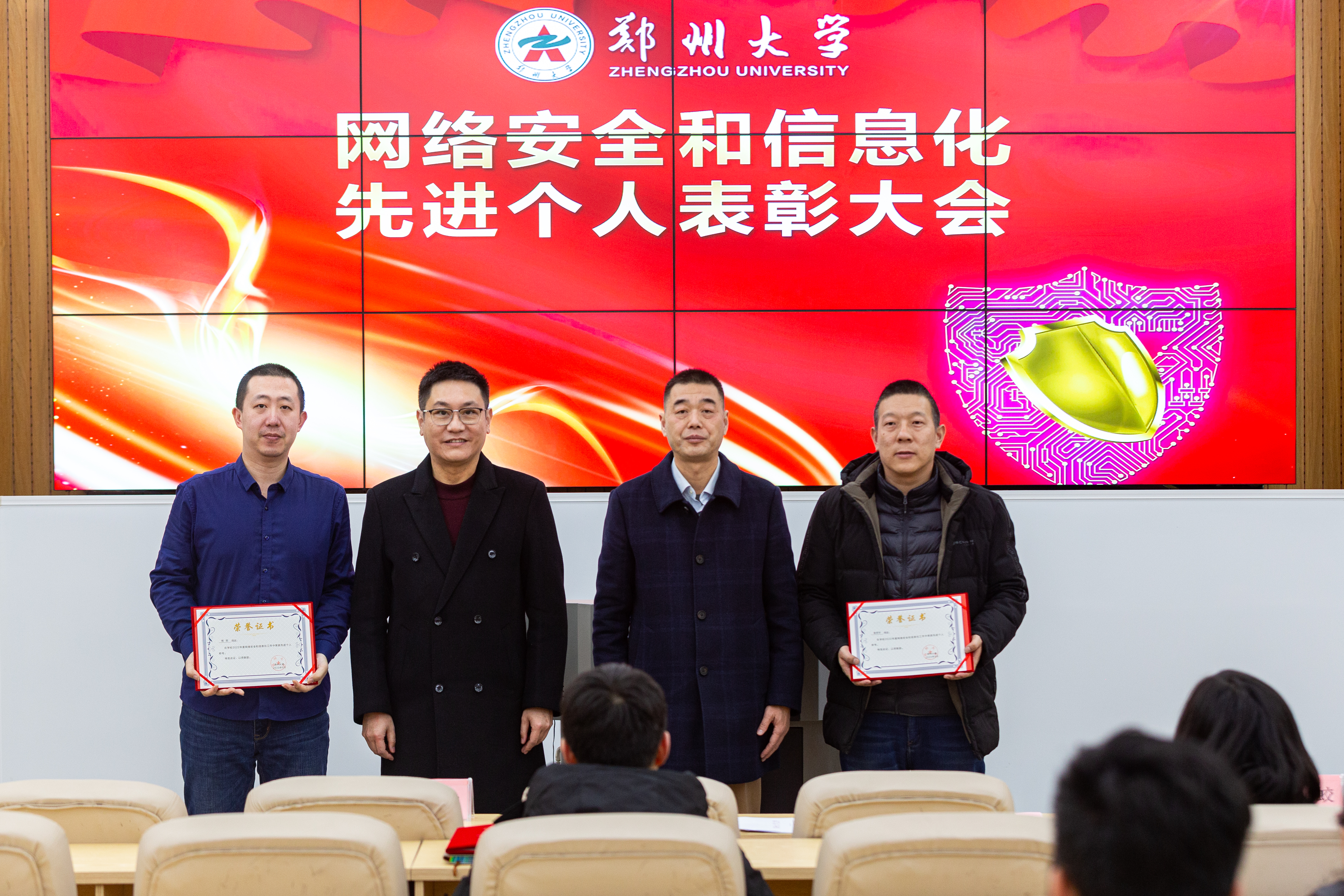 厉励宣读了《pp电子官方网站关于表彰年度网络安全与信息化工作先进个人的决定》。与会领导为先进个人代表颁发了获奖证书。