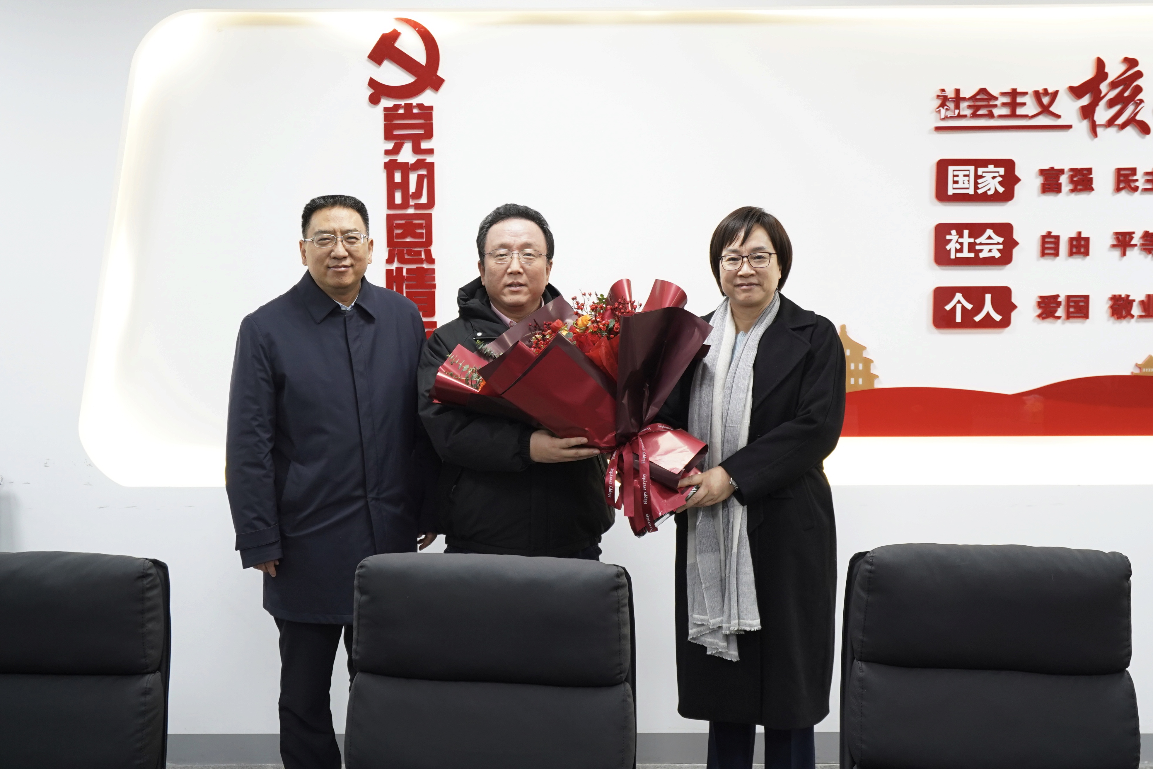 随后,校领导们来到平原实验室和中原关键金属实验室,分别慰问了常俊标院士和赵中伟院士,向他们献上鲜花致以新春的问候。校领导们与两位院士深入交流,感谢他们为学校发展作出的重要贡献,并了解春节安排、实验室运转以及团队最新进展等情况。两位院士表示,感谢学校的温暖关心和大力支持,在新的一年将继续热情投入工作,带领团队产出更多成果,为学校“双一流”建设、服务国家战略与区域经济发展作出更大的贡献。