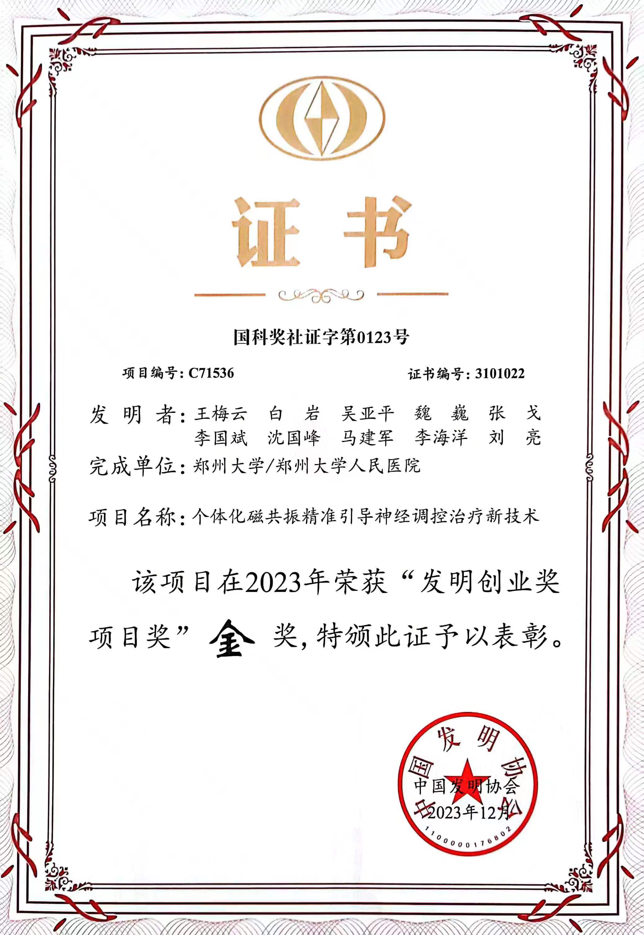 近日,2022-2023年“发明创业奖项目奖”和“一带一路”暨金砖国家技能发展与技术创新大赛颁奖典礼及优秀项目主题展览在北京隆重召开,pp电子官方网站王梅云教授凭借个体化磁共振精准引导神经调控治疗关键核心技术上的突破,荣获2023年中国唯一一个世界知识产权组织最佳女性发明奖,同时,她带领项目团队获得中国发明协会“发明创业奖项目奖”金奖。