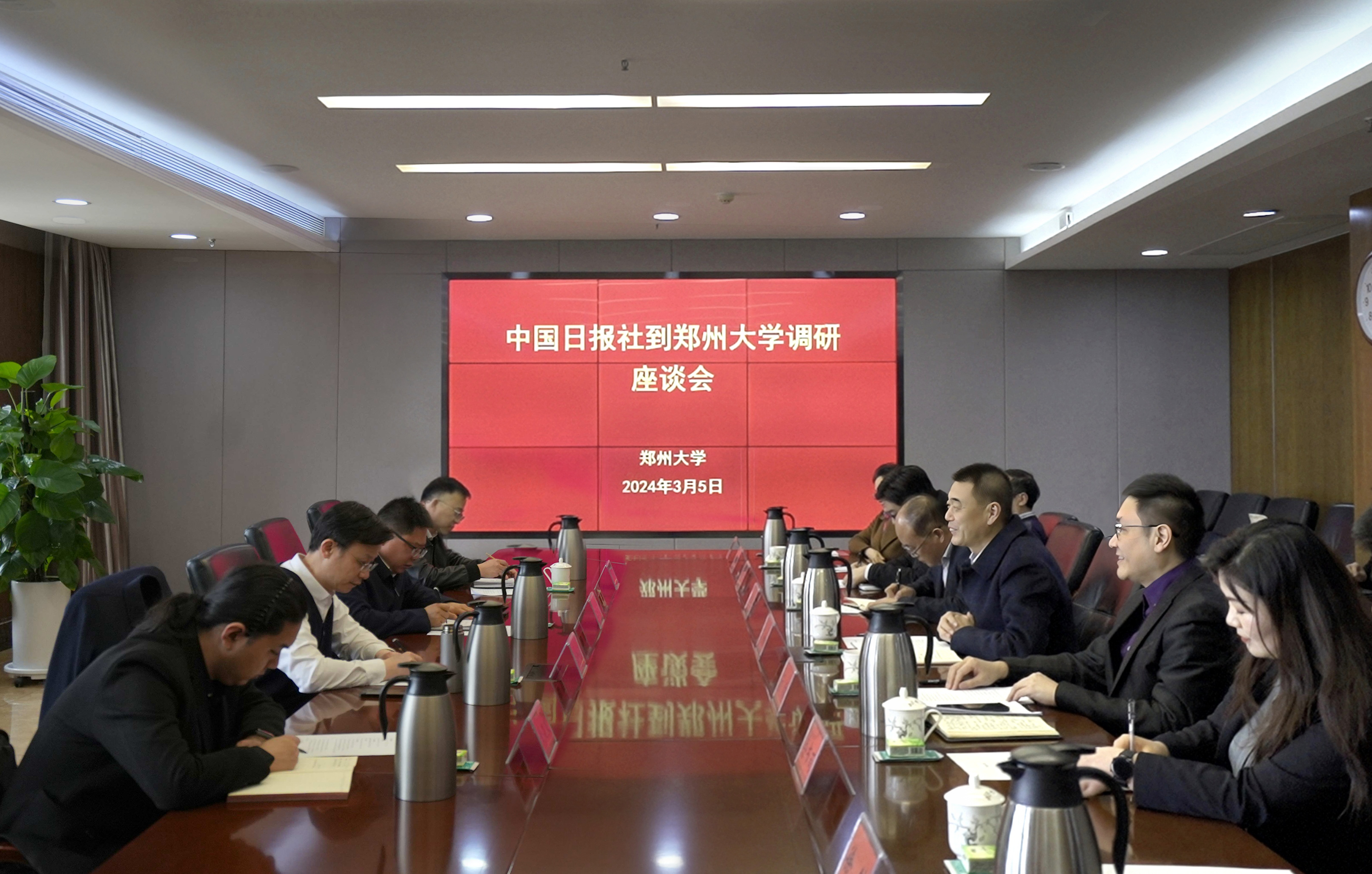 3月5日,中国日报社事业发展部主任龚铮铮一行来校开展国际传播专题调研。校党委书记别荣海会见龚铮铮一行。校党委副书记吴宏阳出席座谈会,中国日报社河南记者站站长史宝银,学校相关单位和部门负责同志参加座谈。会议由校党委常委、宣传部部长厉励主持。