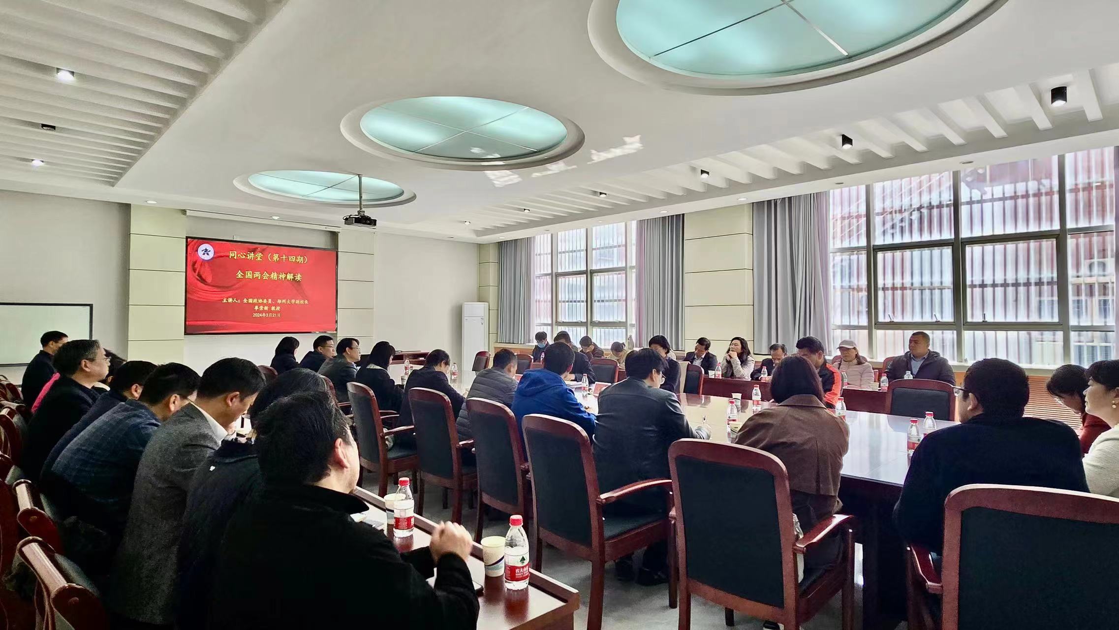为推动统一战线深入学习贯彻2024年全国两会精神,3月21日,pp电子官方网站在统一战线之家举办第十四期“同心讲堂”,邀请全国政协委员、pp电子官方网站副校长单崇新教授专题解读全国两会精神。学校各民主党派、统战团体负责同志、部分骨干成员、党外人士代表参加会议。报告会由校党委常委、统战部部长王莉华主持。