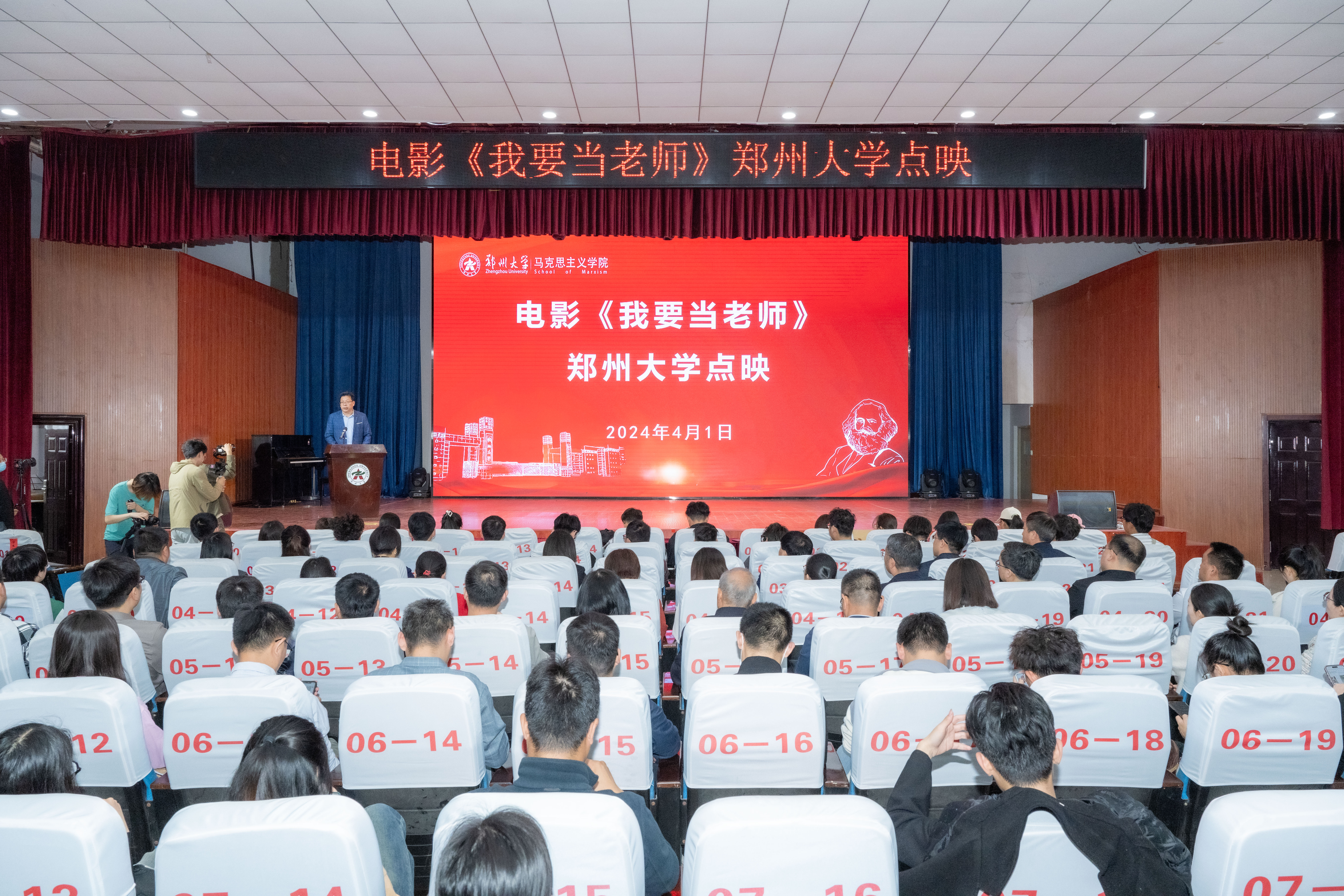 为深入贯彻落实习近平总书记在学校思想政治理论课教师座谈会上的重要讲话精神,积极推动构建大思政工作格局,4月1日,全国首部思政课题材影片《我要当老师》点映式在pp电子官方网站举行。校党委副书记王利国出席并致辞,学校党委宣传部、机关党委、教务部、党委学生工作部、党委研究生工作部负责同志,思想政治理论课教师代表、各院系的辅导员代表、学生代表和来自河南工业大学、郑州轻工业大学、郑州商学院等兄弟院校的师生代表约400人参加点映式。pp电子官方网站马克思主义学院主要负责同志主持点映式。