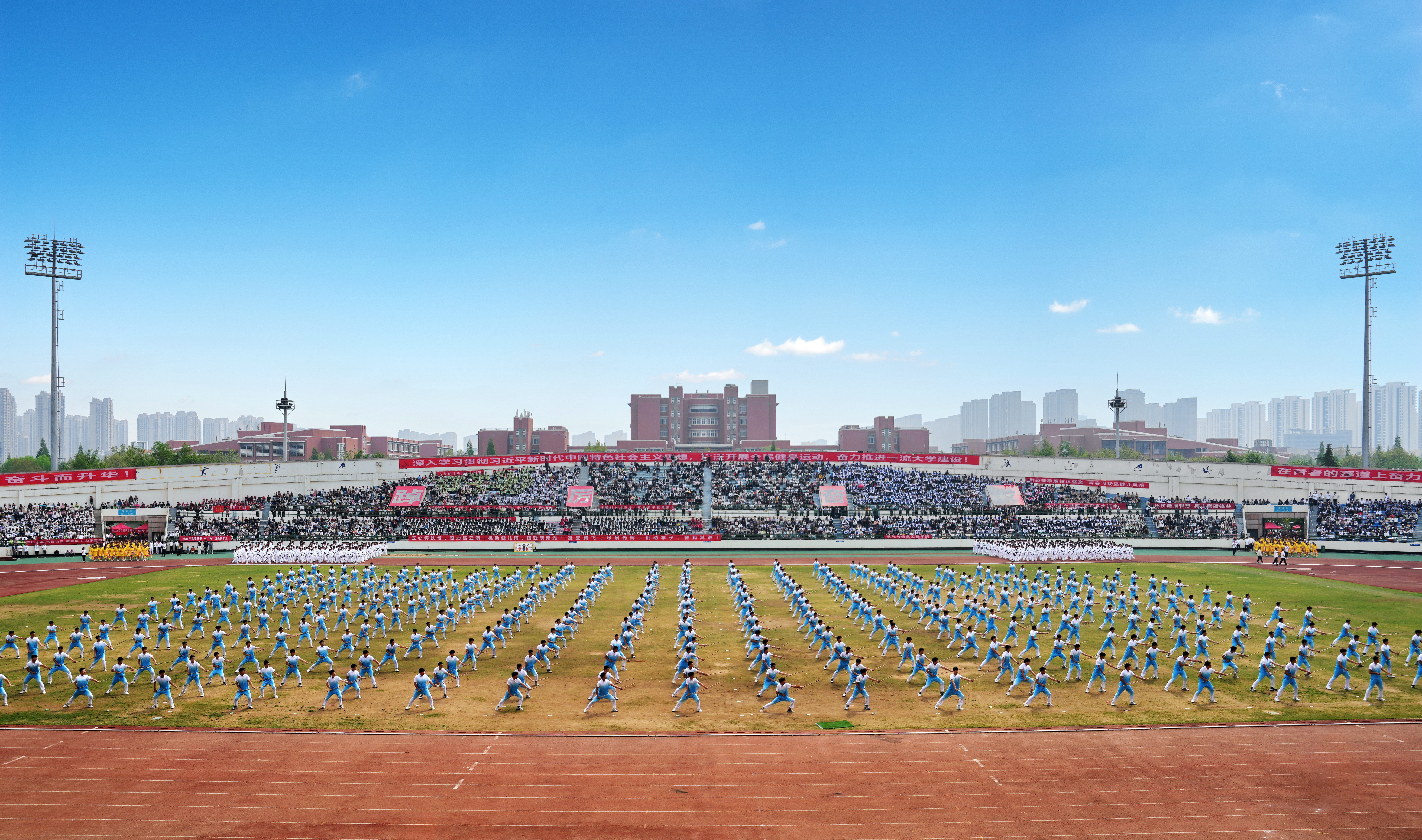 据悉,本次运动会设有学生组比赛项目22项,教工组比赛项目18项,共有42个学院、57个基层工会组织代表队,近6500人参加比赛和表演。(马文亚 李晔彤 撰稿 魏洪波 张宁 孟祥峰 摄影)