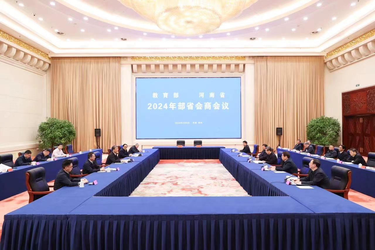 4月8日,教育部、河南省在郑州举行部省会商会议,深入贯彻落实习近平总书记对中部地区崛起和河南改革发展的重要指示批示,助力河南在中部地区崛起中奋勇争先、谱写新时代更加出彩的中原篇章。教育部党组书记、部长怀进鹏,河南省委书记、省人大常委会主任楼阳生出席会议并讲话,河南省委副书记、省长王凯出席会议。教育部党组成员、副部长王光彦,河南省委常委、秘书长陈星,省委常委、组织部部长王刚,副省长宋争辉出席会议。王光彦、宋争辉代表双方签署战略合作协议。