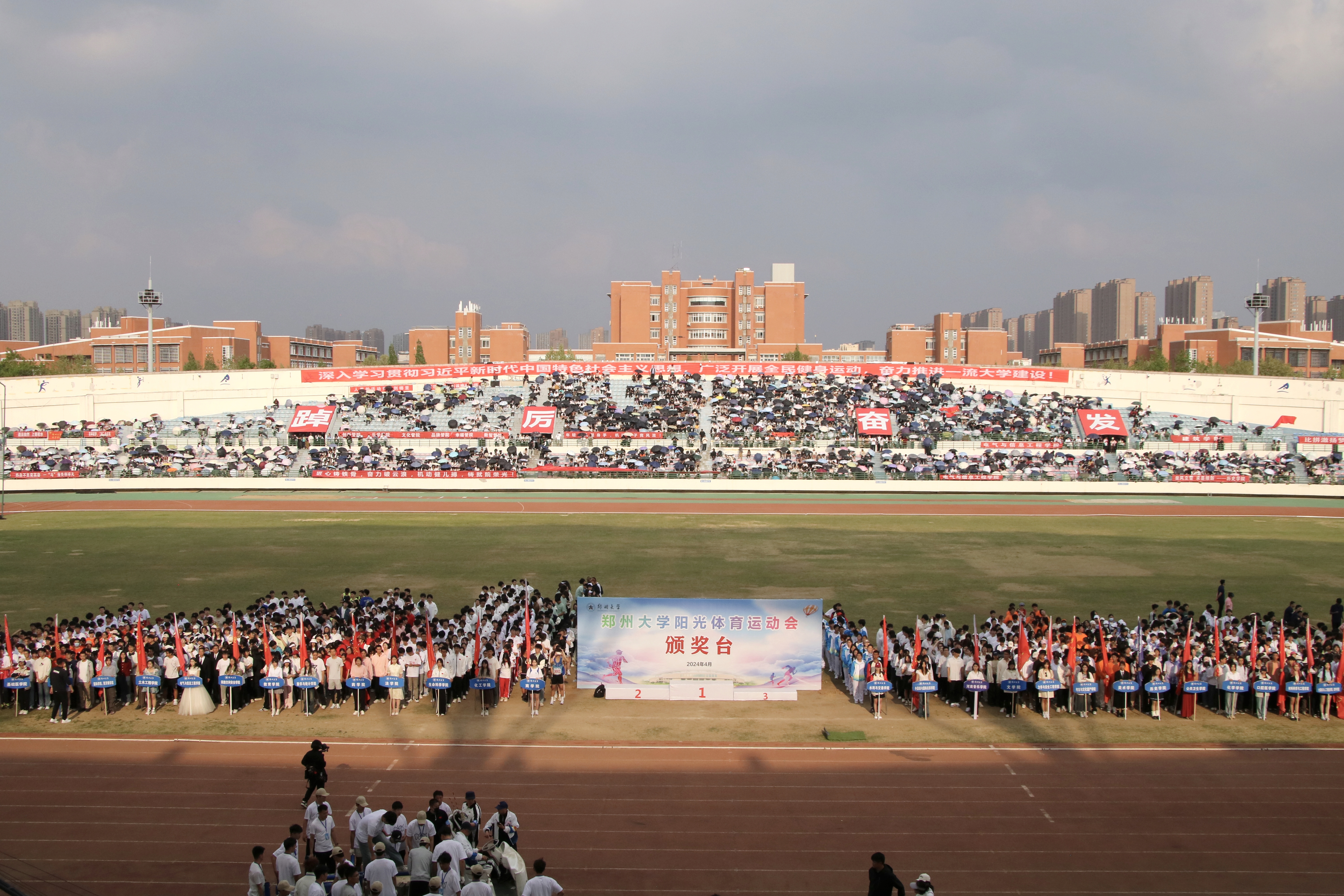 本届运动会共有97支代表队、5382名运动员参加40个项目的240组比赛,其中第一附属医院张毓炯老师打破了尘封25年的教工女子铅球校运会纪录,取得了运动成绩和精神文明“双丰收”,全面展现了郑大师生良好的健身意识和健康水平以及“勇争一流、追求卓越”的精神风貌。广大师生纷纷表示,将把本次运动会顽强拼搏、奋勇争先、团结协作的体育精神融入到日常学习、工作和生活中,争做一流大学建设的领跑者,强化自身本领,不断超越自我,努力成为可堪大用、能担重任的栋梁之才。(马文亚 吴晨曦 撰稿 陈宇翔 沈静雯 摄影)