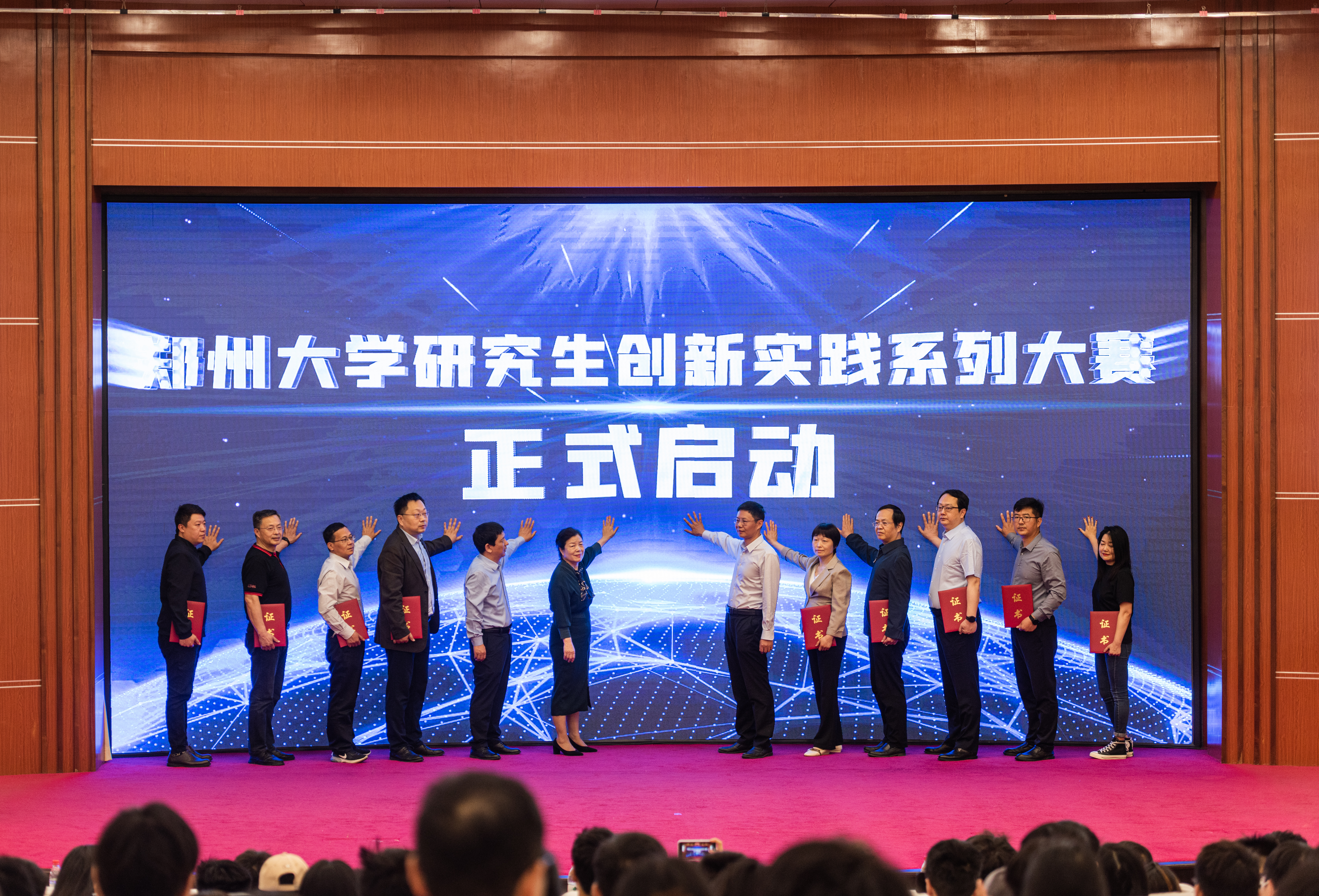 会上,与会领导为2023年中国研究生创新实践系列大赛一等奖获奖团队颁奖,为2024年pp电子官方网站研究生创新实践系列大赛承办单位颁发立项证书,并共同启动pp电子官方网站研究生创新实践系列大赛。