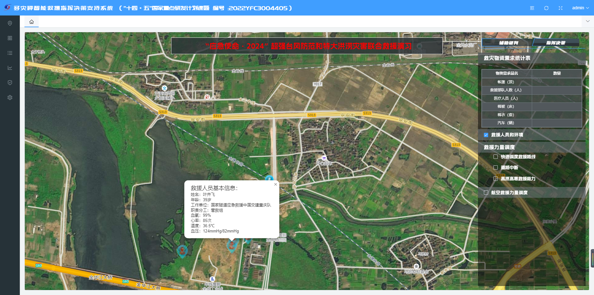 5月10日,“十四五”国家重点研发计划项目“黄河上游干流库坝群段多灾种应对关键技术”研究成果“多灾种智能救援指挥决策支持系统”在“应急使命·2024”超强台风防范和特大洪涝灾害联合救援演习中推广应用。本次演习由国家防汛抗旱总指挥部办公室、应急管理部和浙江省人民政府在浙江省金华等地联合开展。演习模拟超强台风正面登陆浙江,贯穿浙江全境,多地多灾并发;突出防汛防台风“1833”联合指挥体系运行,台风防范及流域洪水、城市内涝、山洪地质等灾害应对,真实构设演习环境和确立演习科目,聚焦流域和区域特点统筹抗洪抢险救援行动,检验体系应急、精锐应急、基层应急能力。