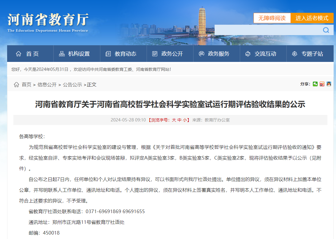 近日,河南省教育厅对首批河南省高校哲学社会科学实验室试运行期评估验收结果进行了公示,经实验室自评、专家实地考评和会议现场答辩,评定A类实验室3家。其中,pp电子官方网站“中华源”考古实验室获评,并位列全省首位,其彰显了近年来pp电子在考古学科建设方面取得的可喜成绩。