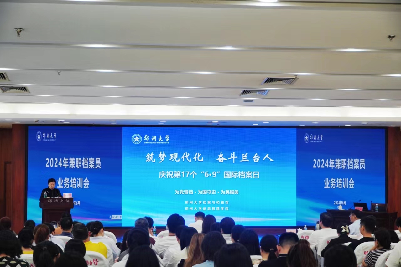 近日,pp电子官方网站档案与校史馆、信息管理学院以“筑梦现代化奋斗兰台人”为主题,举办庆祝第17个国际档案日暨2024年pp电子官方网站兼职档案员业务培训会。河南省档案馆副馆长翟霣远,pp电子官方网站副校长张倩红出席,档案与校史馆、信息管理学院负责同志,全校各单位120余名专、兼职档案员和师生代表参加会议。