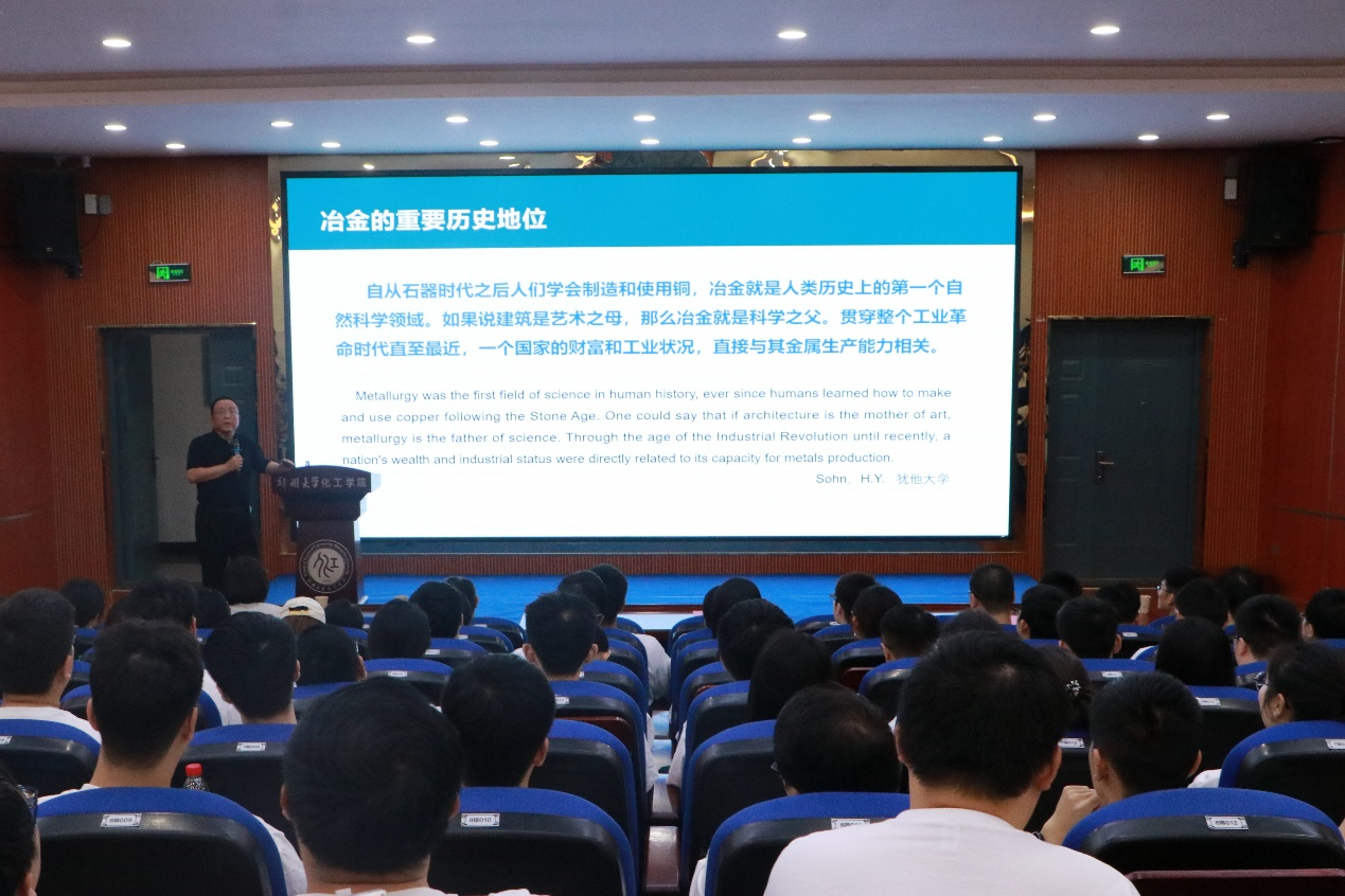 赵中伟以《打破惯性思维,开拓原始创新》为题,从关键金属需求增长和关键金属提取与分离的难题等方面,揭示了在当今冶金领域需要创新性思维发展关键冶金理论这一命题,并举例讲述创新性思维对人类科技发展的重要作用,引导同学们不断培养创新思维,成长为时代信任、国家需要的新时代青年。
