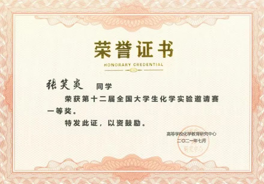第十二届全国大学生化学实验邀请赛一等奖