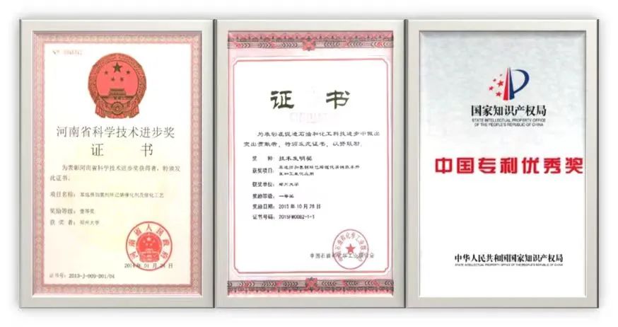 成果获河南省科技进步奖一等奖1项、中石化联合会技术发明奖一等奖1项