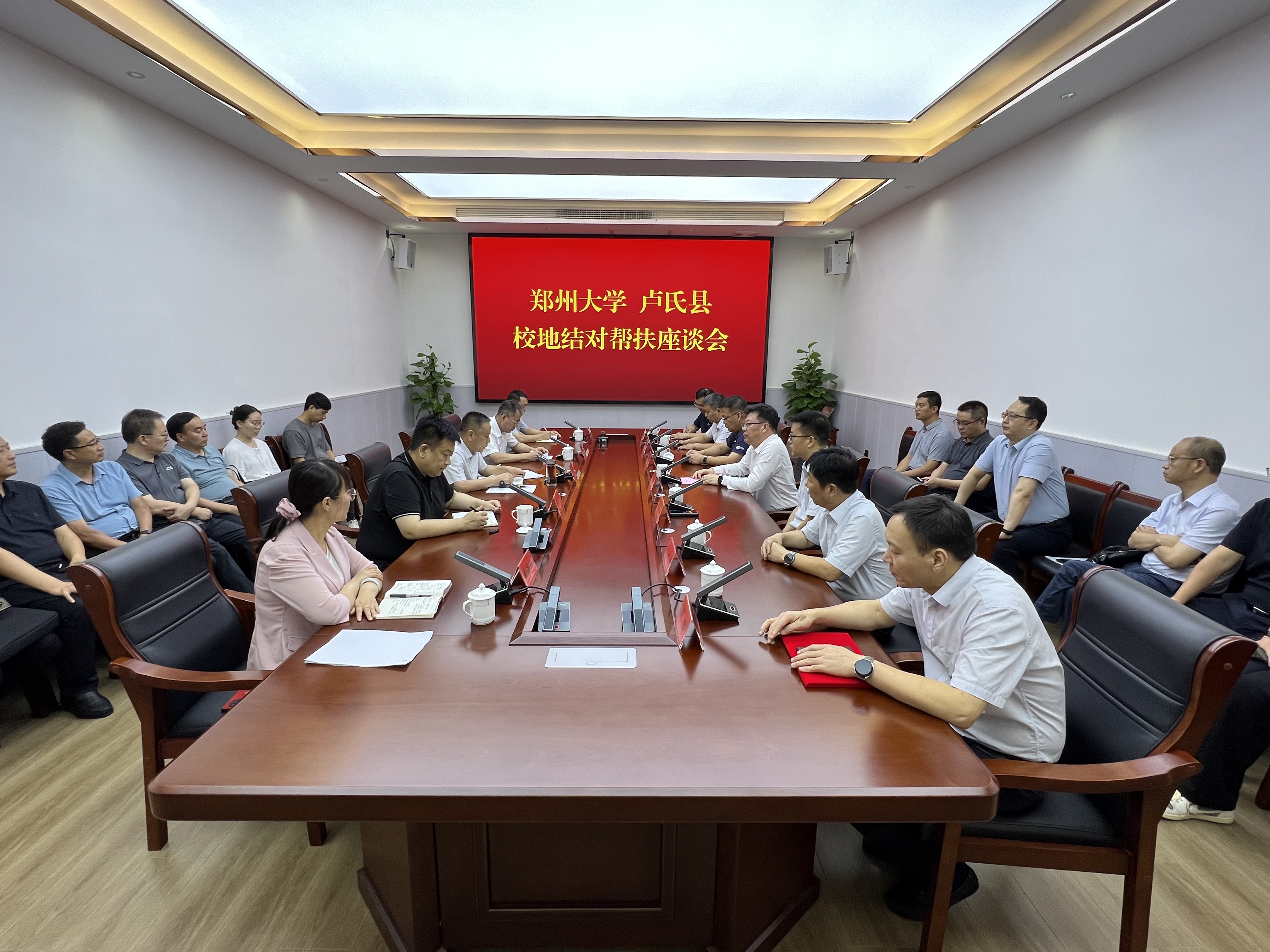 为深入贯彻全省2024年巩固拓展脱贫攻坚成果同乡村振兴有效衔接工作会议精神,7月16日至17日,校党委副书记王利国率队赴卢氏县开展校地结对帮扶工作,与卢氏县委书记胡志全等县领导就加强校地结对帮扶进行深入交流,并在当地组织开展党支部结对共建和送文化、送医疗下乡活动,看望慰问在当地开展暑期“三下乡”社会实践活动的青年学生。