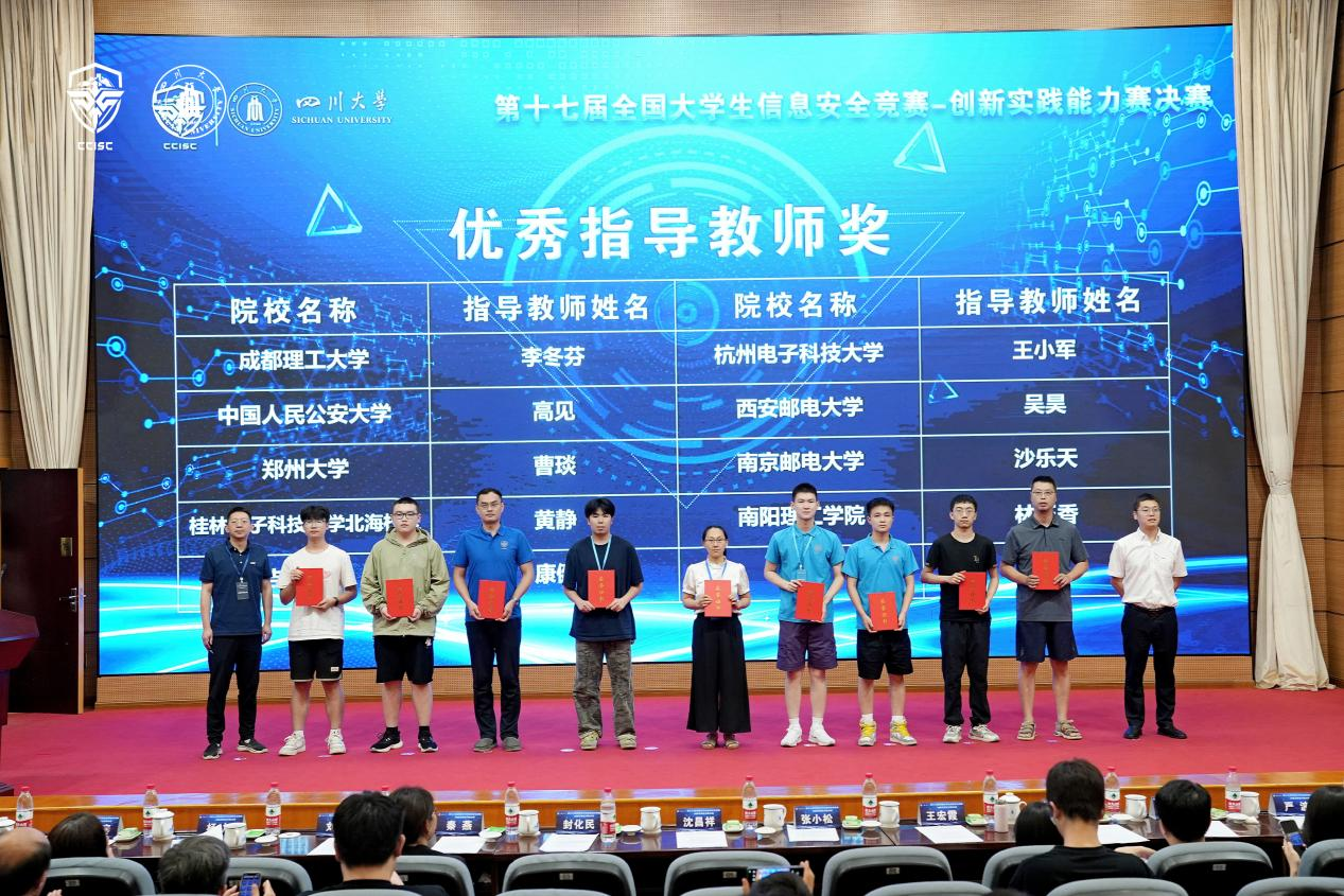 近日,由教育部高等学校网络空间安全专业教学指导委员会主办,四川大学承办的第十七届全国大学生信息安全竞赛创新实践能力赛决赛在四川大学举行。pp电子网络空间安全学院嵩山实验班杨浩琦、吕玉培、曲奎润、夏君豪等4位同学组成的SSSec0战队获得一等奖,指导教师曹琰获得“优秀指导教师”称号。