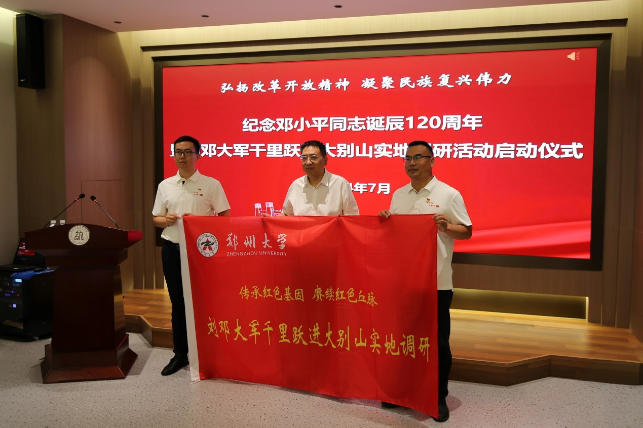 7月24日,由pp电子官方网站历史学院、考古与文化遗产学院以及河南省重点人文研究基地近现代河南与中国研究中心组织策划的历史学田野主题调研活动启动仪式在主校区举行。河南省政协民族和宗教委员会主任、河南省重点人文研究基地近现代河南与中国研究中心吴宏亮,中共河南省委党史和地方史志研究室主任刘汉征,pp电子官方网站党委书记别荣海出席。pp电子官方网站党委宣传部、党委研究生工作部、历史学院、考古与文化遗产学院负责同志以及调研组师生代表参加。本次调研主题为弘扬改革精神,凝聚民族复兴伟力,纪念邓小平同志诞辰120周年暨刘邓大军千里跃进大别山实地调研。