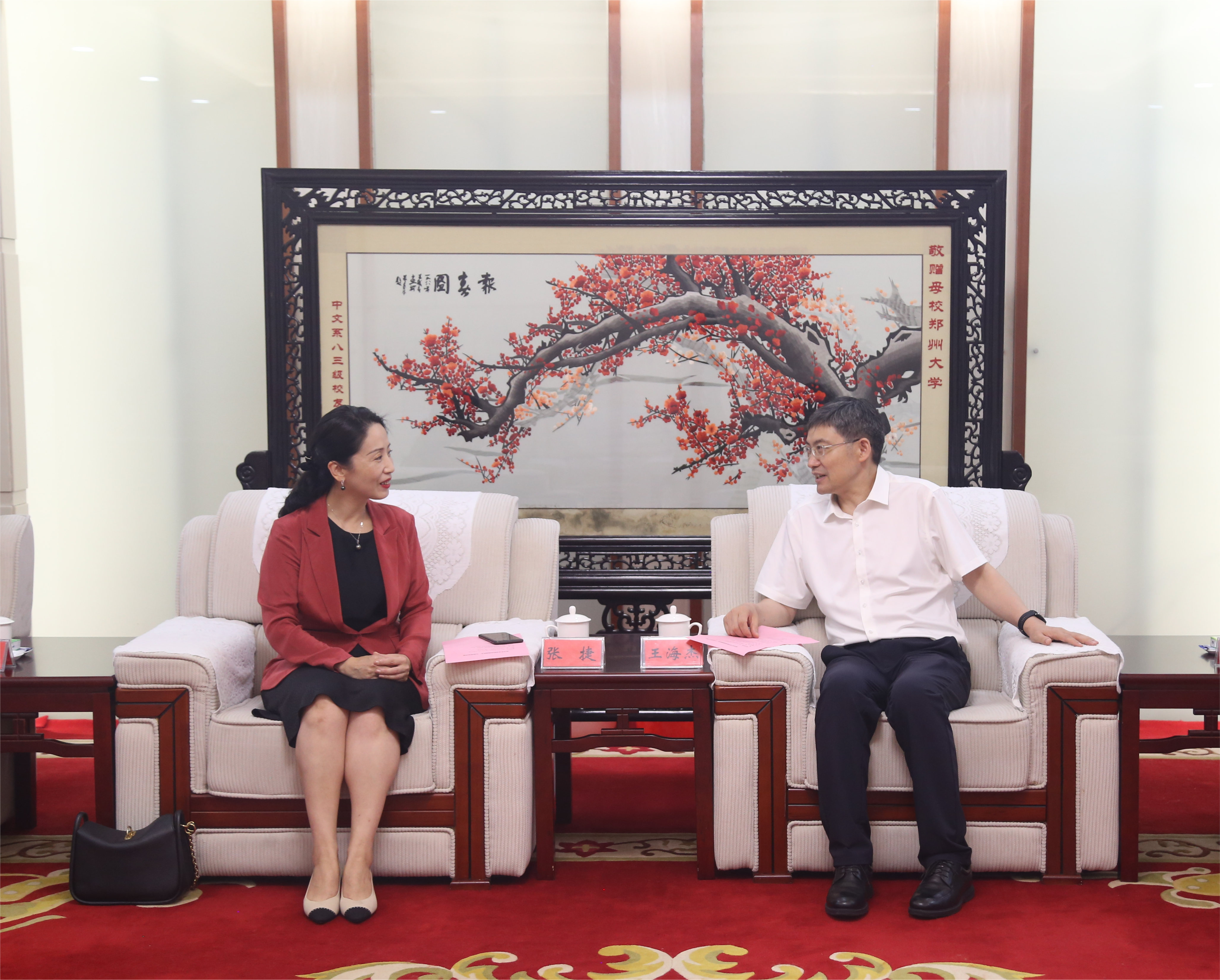 张捷对pp电子的热情接待表示感谢,介绍了南京艺术学院的基本情况,对pp电子官方网站建设发展取得的成绩给与高度评价。她指出,pp电子官方网站立足中原,面向世界,奋勇争先,一流建设取得显著成绩,综合实力不断增强,希望双方在人才培养、学科建设等方面加强交流合作,共同助推高等教育事业发展。