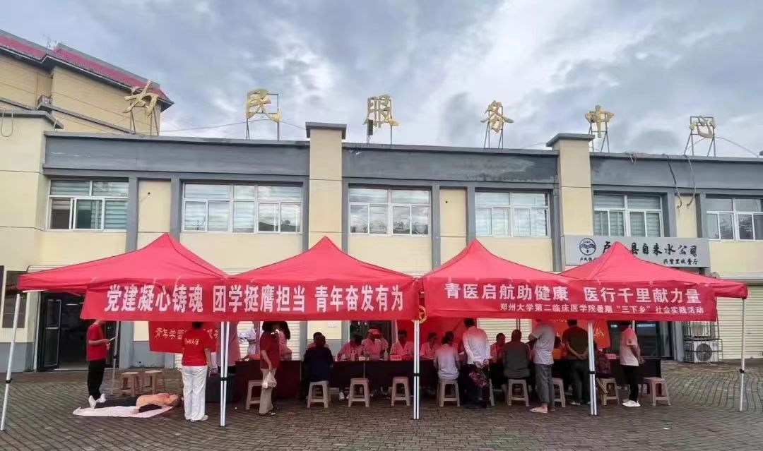 在健康中国建设的道路上砥砺前行,为推动卫生健康事业高质量发展奉献青春力量。第二临床医学院实践队发挥所长,以“青医启航助健康,医行千里献力量”为主题,以青年医学生身份和视角记录伟大祖国的乡村振兴之路、以社会及人们需求为导向普及医疗服务专业化、以点亮生命安全之灯提升群众急救知识,深入卢氏县兴贤里、官道口社区进行免费义诊、健康体检、科普宣讲、健康咨询等保健服务,将pp电子官方网站临床医学院优势科研、教学资源带到基层,送到群众身边。本次健康系列服务,累计服务超过1600名群众,完成健康咨询1086人次,在服务群众、宣传好就医工作之余,实践队员们还向感兴趣的群众累计发放《招生简章》超过200份,展现了郑大学子服务他人的精神面貌。