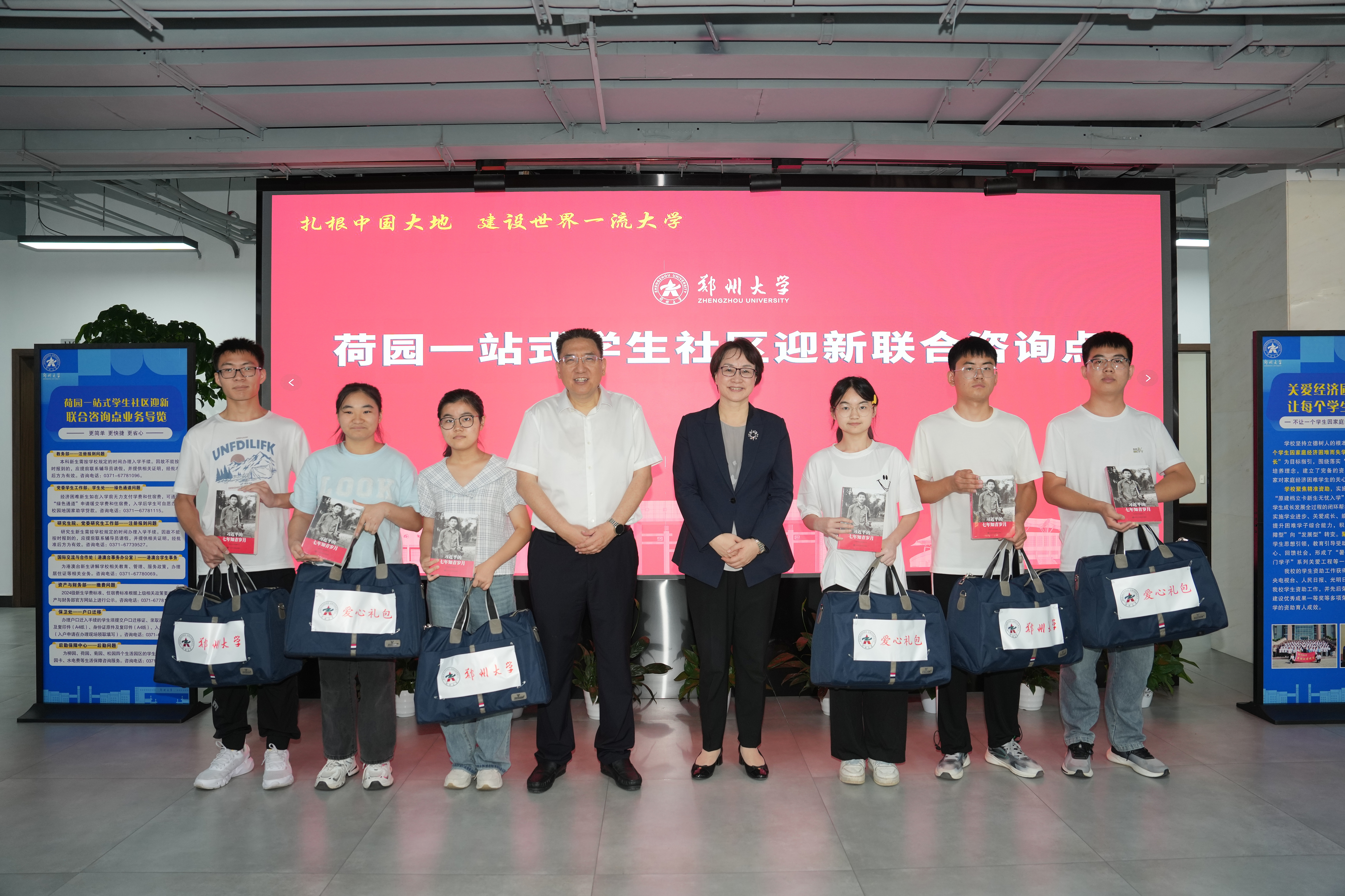 8月31日上午,校党委书记别荣海、校长李蓬院士带领全体在校校领导分别到主校区、南校区、北校区和火车站迎新点检查指导2024级本科生迎新工作,看望新生和家长,慰问迎新工作人员。校领导到南门检查新生入校工作,听取入校流程、交通疏导等情况汇报,向前来报到的新生表示祝贺。在理工科、文科、医科迎新点,校领导详细了解各学院新生报到、专业设置、招生就业、拔尖人才培养、国际交流等情况,与来自省内外和港澳台的新生及其亲友交流互动、合影留念,并向辛勤付出的师生员工和志愿者表示感谢。校领导为新生讲解校徽含义,鼓励大家接续发扬郑大精神,德智体美劳全面发展,要求各培养单位瞄准国家所需和区域优势,积极培育交叉融合新兴专业。在荷园“一站式”学生社区,校领导查看迎新数据平台,了解实时报到情况,听取信息化迎新服务工作汇报,向家庭经济困难新生发放“爱心礼包”,勉励他们“安心学习,勇敢追梦”,叮嘱相关部门做好资助育人,确保每一个学生无忧入学,顺利完成学业。