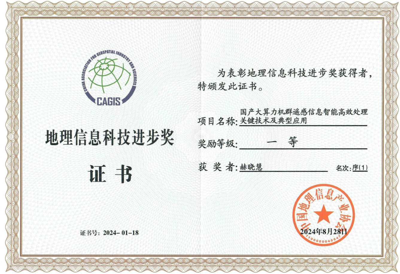 地理信息科技进步奖作为经科技部批准设立,由中国地理信息产业协会评选,是全国地理信息领域的最高科技殊荣,旨在表彰在地理信息科学研究、技术创新开发、科技成果推广应用服务等方面作出突出贡献的组织和个人。本次获奖不仅为pp电子官方网站遥感科学与技术学科赢得了荣誉,更为我国地理信息产业的高质量发展与智能化转型注入了新的活力,对于提升我国遥感高性能计算领域的话语权具有深远意义。下一步,pp电子官方网站将继续深耕地理信息技术领域,探索创新,为我国地理信息产业的持续繁荣与发展贡献力量。