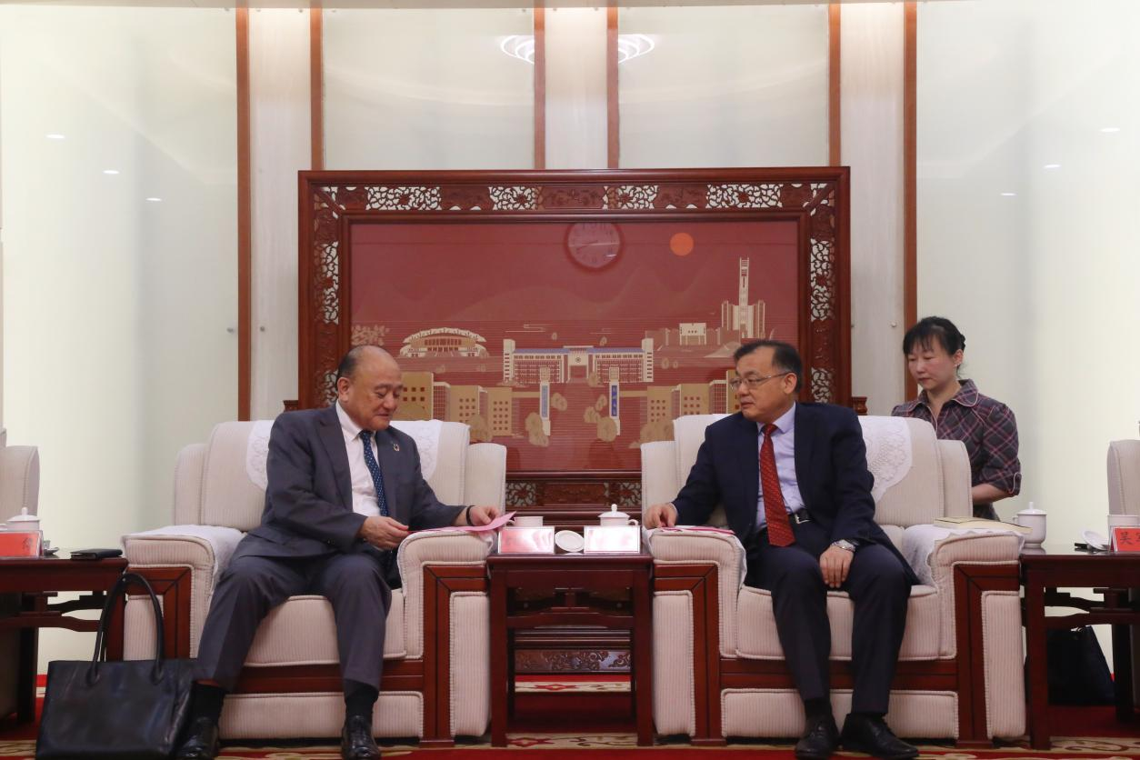 近日,日本城西国际大学校长仓林真砂斗一行2人来校访问交流。pp电子官方网站党委副书记、工会主席韩国河在主校区会见来访客人,国际交流与合作处、外国语与国际关系学院负责同志参加会见。