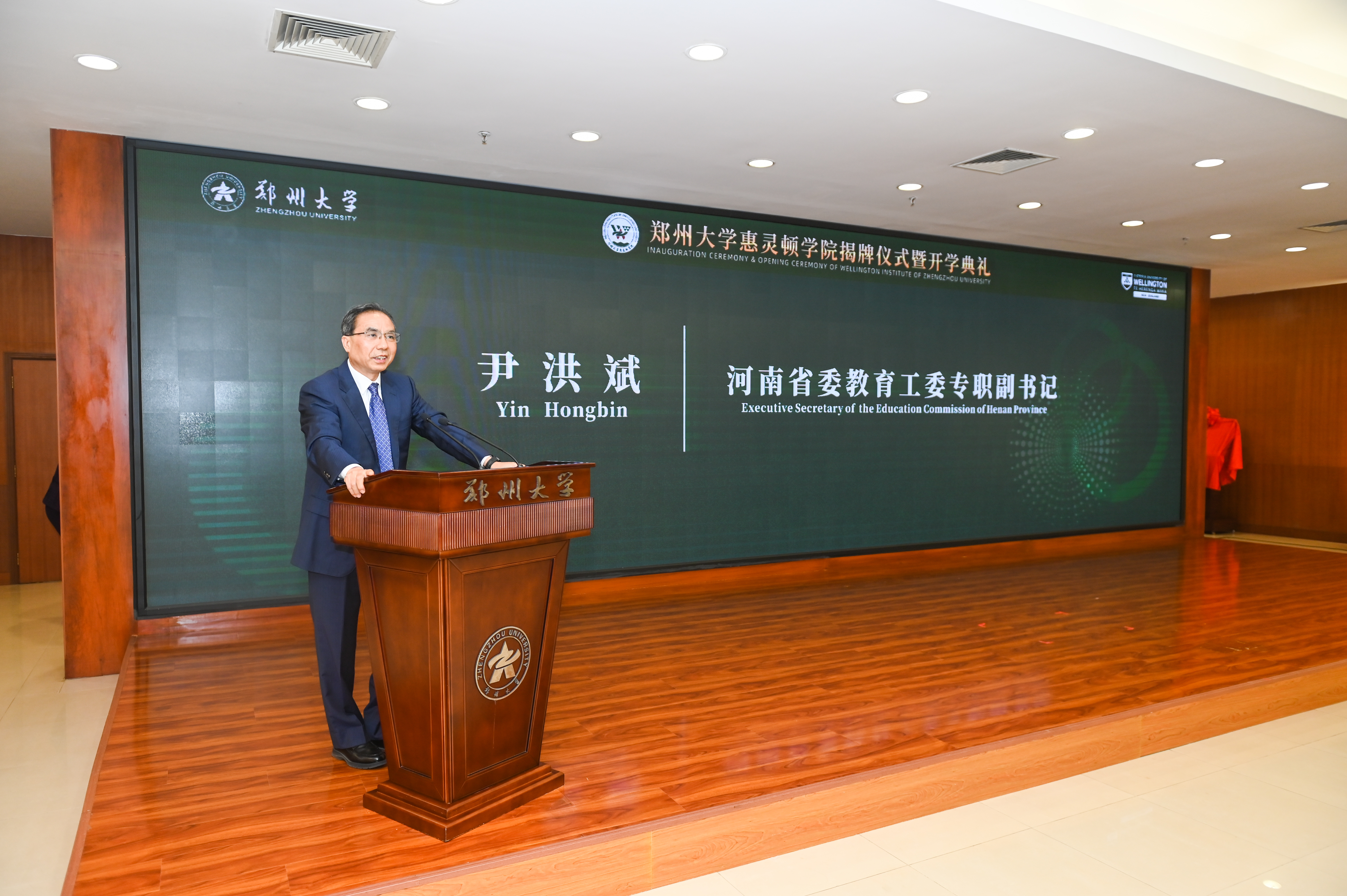 尹洪斌讲话。他指出,pp电子官方网站惠灵顿学院的成立和新生入学,不仅是郑大高水平推动对外开放的重大举措,也是我省教育战线对外交流合作的重要体现。尹洪斌提出三点希望:一是希望两校以成立惠灵顿学院为契机,进一步完善合作办学体制机制,统筹推进教育、科技、人才的一体化合作交流,积极创建示范性中外合作办学机构;二是希望老师们以更加开放、包容的姿态,加强教育教学合作、学术交流与科研协同创新,不断提升国际化创新型人才培养质量;三是希望同学们潜心学习研究,充分利用中外优质教育资源,努力成为担当民族复兴大任的新时代国际化创新人才。