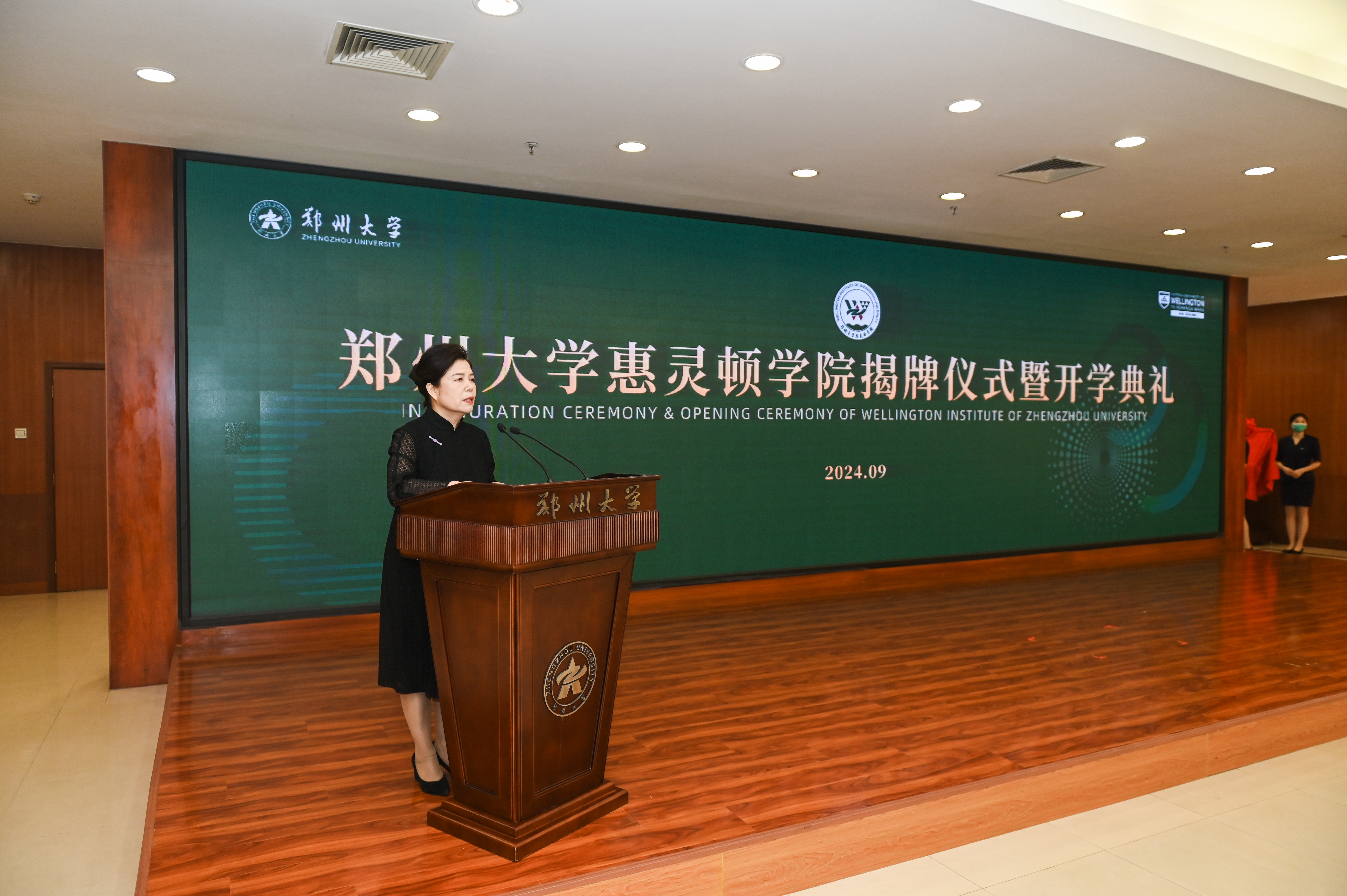 李蓬在开学典礼上致辞。她表示,惠灵顿维多利亚大学以良好的教育质量和杰出的研究成果著称,pp电子官方网站也正在建设世界一流大学的道路上阔步前行。pp电子官方网站惠灵顿学院是双方长期合作、双向奔赴的结晶,是中新教育领域合作的重要成果。李蓬向惠灵顿学院新同学们提出三点希望:一是要直面挑战、克服困难,尽快克服教育模式转换、英文教学环境等多重考验,为成就更优秀的自己而不懈努力;二是要学会倾听不同文化的声音,认识和尊重世界的多样性,在比较与借鉴中拓宽视野;三是要立足郑大、着眼未来、面向国际,掌握扎实的专业知识,全面培养全球胜任力,早日成为具有国际视野的一流人才。她指出,希望pp电子官方网站惠灵顿学院越办越好,成为中新高等教育合作的新高地、促进文明互鉴的开放地、一流国际化人才培养的示范区。