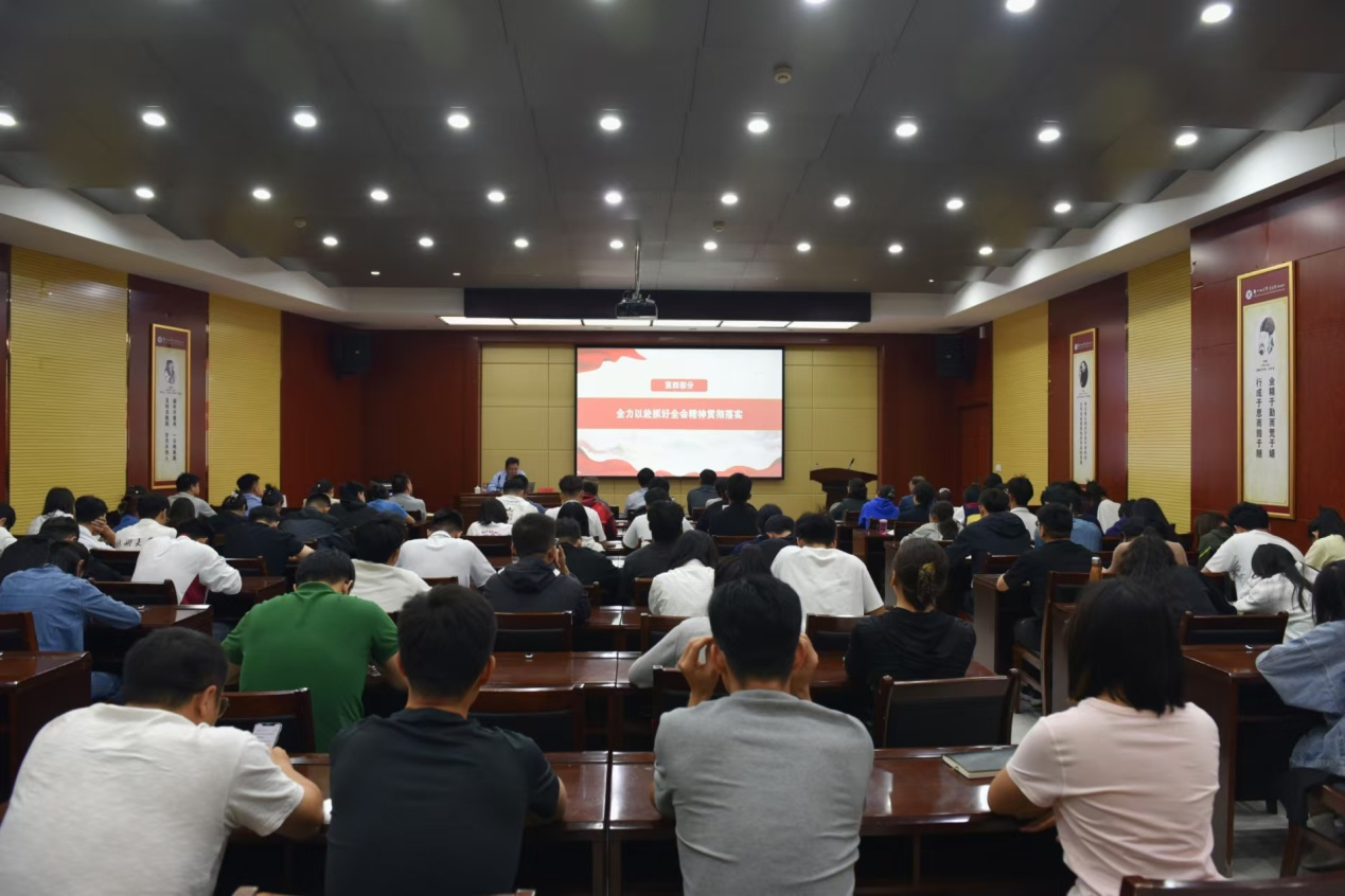 王利国以《学习贯彻党的二十届三中全会暨全国教育大会精神》为题,从深刻认识党的二十届三中全会的总体情况和重大意义、深入学习领会习近平总书记在全会上的重要讲话精神、全面准确理解《决定》提出的进一步全面深化改革重大举措、全力以赴抓好全会精神贯彻落实、学习贯彻习近平总书记重要讲话和全国教育大会精神以及学院改革的思路六个方面,作了系统阐述和深入解读。他强调,学习好宣传好贯彻好党的二十届三中全会精神和全国教育大会精神是教育系统当前和今后一个时期的首要政治任务。他表示,体育学院(校本部)师生要深刻认识教育强国建设的重大深远意义,紧紧围绕立德树人的根本任务,着眼于培养德智体美劳全面发展的社会主义建设者和接班人,为实现中华民族伟大复兴的强国梦贡献自身力量。