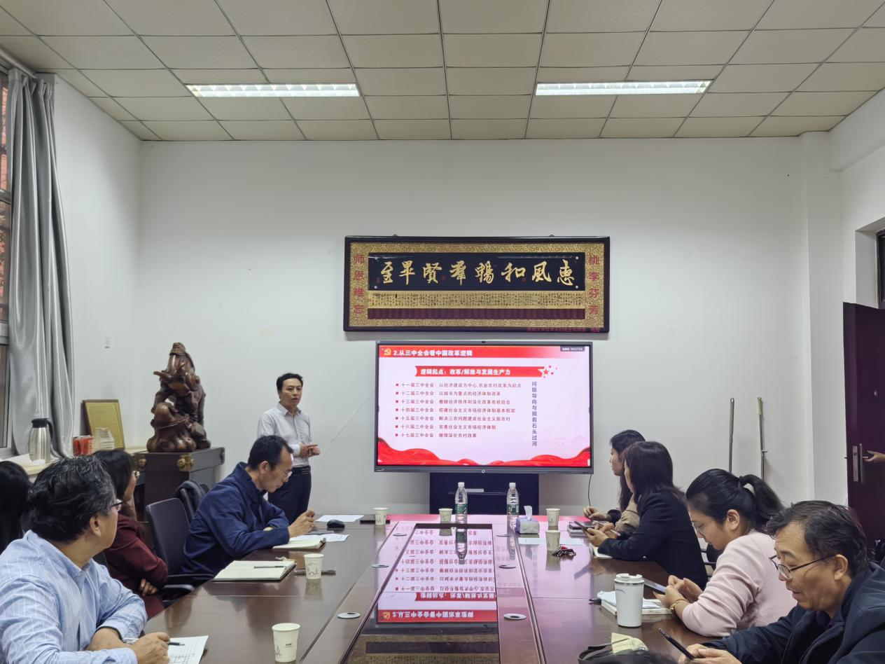 为深入学习贯彻党的二十届三中全会精神,根据校党委统一部署,9月30日,pp电子官方网站学习贯彻党的二十届三中全会精神宣讲团成员李祺到哲学学院作宣讲报告,学院全体教职工、学生党员代表参加。