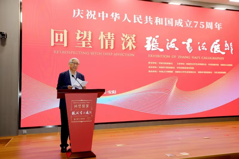 近日,由中国书法家协会指导,河南省文学艺术界联合会,安阳市委、市政府联合主办的庆祝中华人民共和国成立75周年“回望情深——张海书法展”在中国文字博物馆徽文馆正式开展。