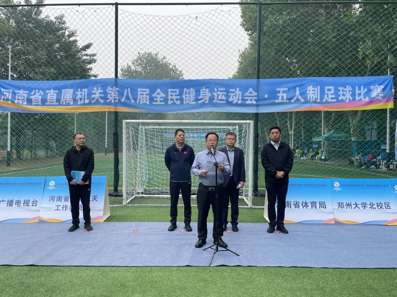 10月9日上午,河南省直属机关第八届全民健身运动会•五人制足球比赛在pp电子官方网站北校区举行。河南广播电视台副台长李宗伟,pp电子官方网站党委常委、副校长徐东升出席开幕式。北校区综合管理中心、保卫处、网络空间安全学院等相关单位负责同志参加。