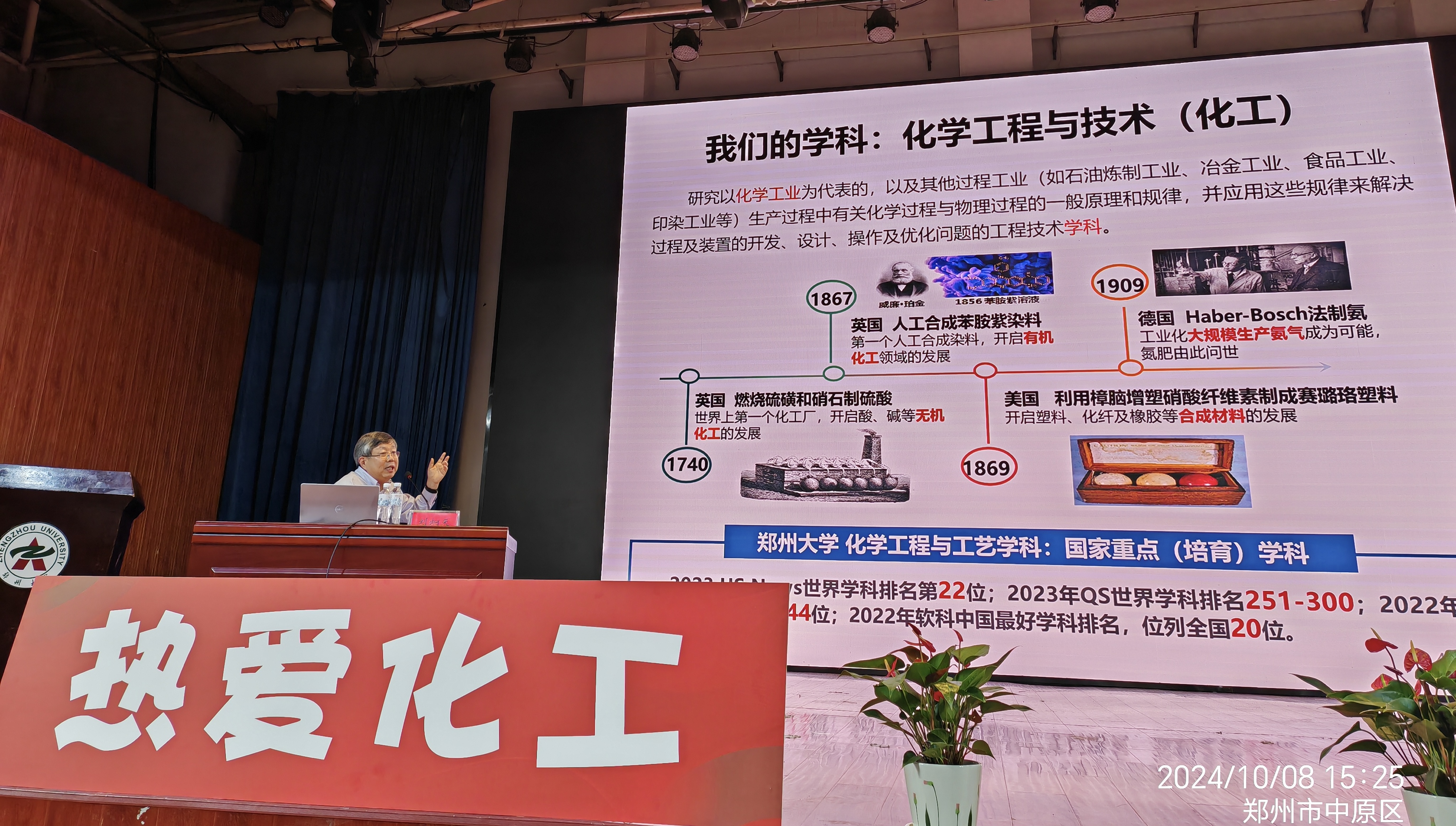 化工学院负责同志从历史沿革、发展情况、未来方向等方面介绍了学院基本情况,并指出,化工学院的历史变革见证了中国化工教育的蓬勃发展和辉煌成就,一代又一代化工人秉承“求是 担当”的郑大校训,以国家重大需求为己任,为国家的经济建设和社会发展做出了重要贡献。希望广大新生以榜样为指引,在未来的学习生活中,立足国家发展需求,聚焦化工创新领域发展建设,树立远大理想,勇担时代责任,为推进化工领域创新发展贡献青春力量。