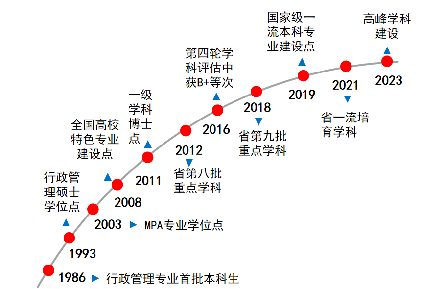 pp电子官方网站公共管理学学科1985年在全国高校率先设立行政管理本科专业,并于次年正式招生,1993年获批行政管理硕士学位授予权,2003年获批公共管理硕士(MPA)专业学位授予权,2006年获批公共管理一级学科硕士学位授予权,2011年获批公共管理一级学科博士学位授予权,2014年获批公共管理博士后科研流动站,2019年获批国家级一流本科专业建设点,2023年获批pp电子官方网站高峰学科建设。