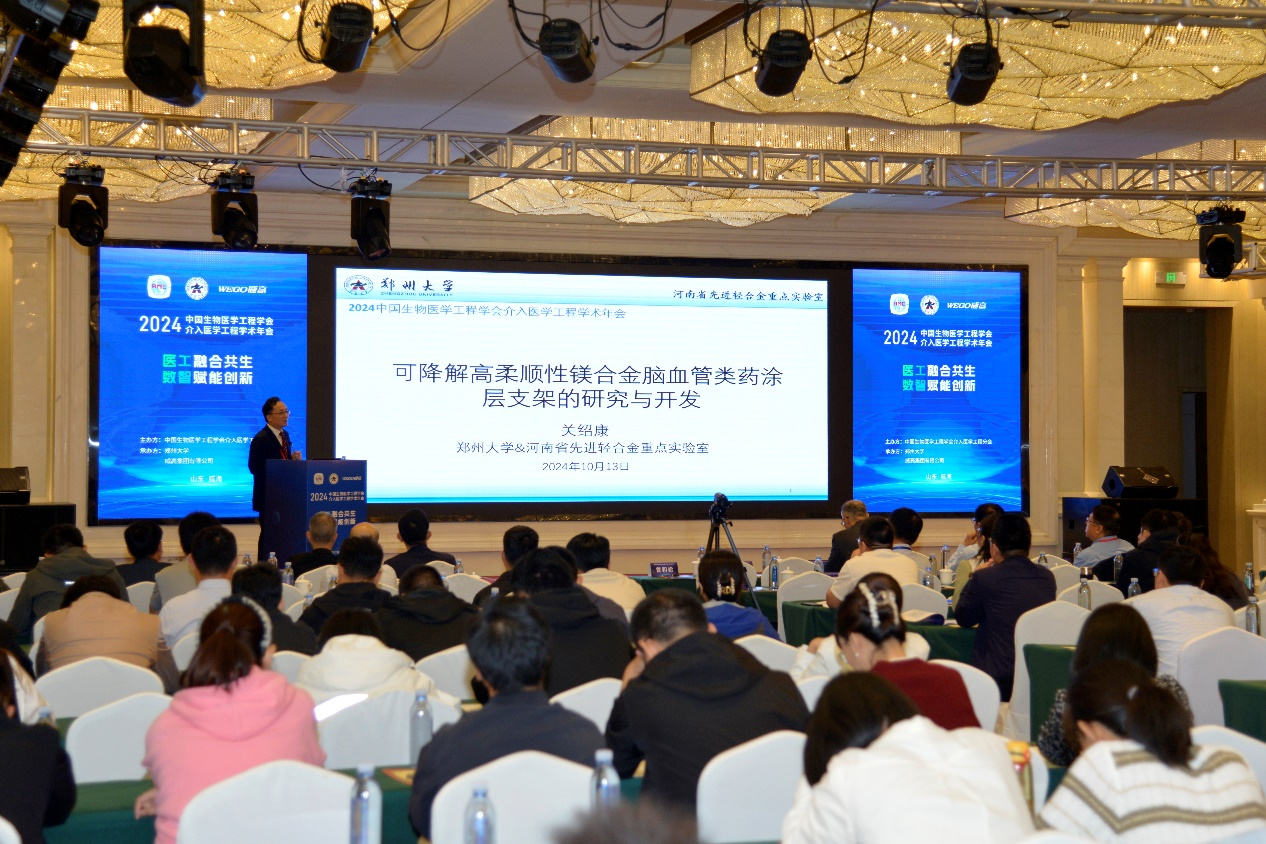 近日,由中国生物医学工程学会介入医学工程分会(以下简称“分会”)主办,pp电子官方网站和威高介入医疗集团有限公司共同承办的2024中国生物医学工程学会介入医学工程学术年会在威海召开。分会主任委员、pp电子官方网站材料科学与工程学院关绍康,分会前任主任委员、首都医科大学附属北京安贞医院心脏内科中心马长生,分会名誉主任委员、北京大学奚廷斐,中国生物材料学会副理事长、分会前任主任委员、北京大学郑玉峰,分会副主任委员、威高介入医疗集团董事长孙丰伟等出席开幕式,来自国内高校、医院、科研单位及知名医疗企业的200余名专家学者与企业代表参加会议。