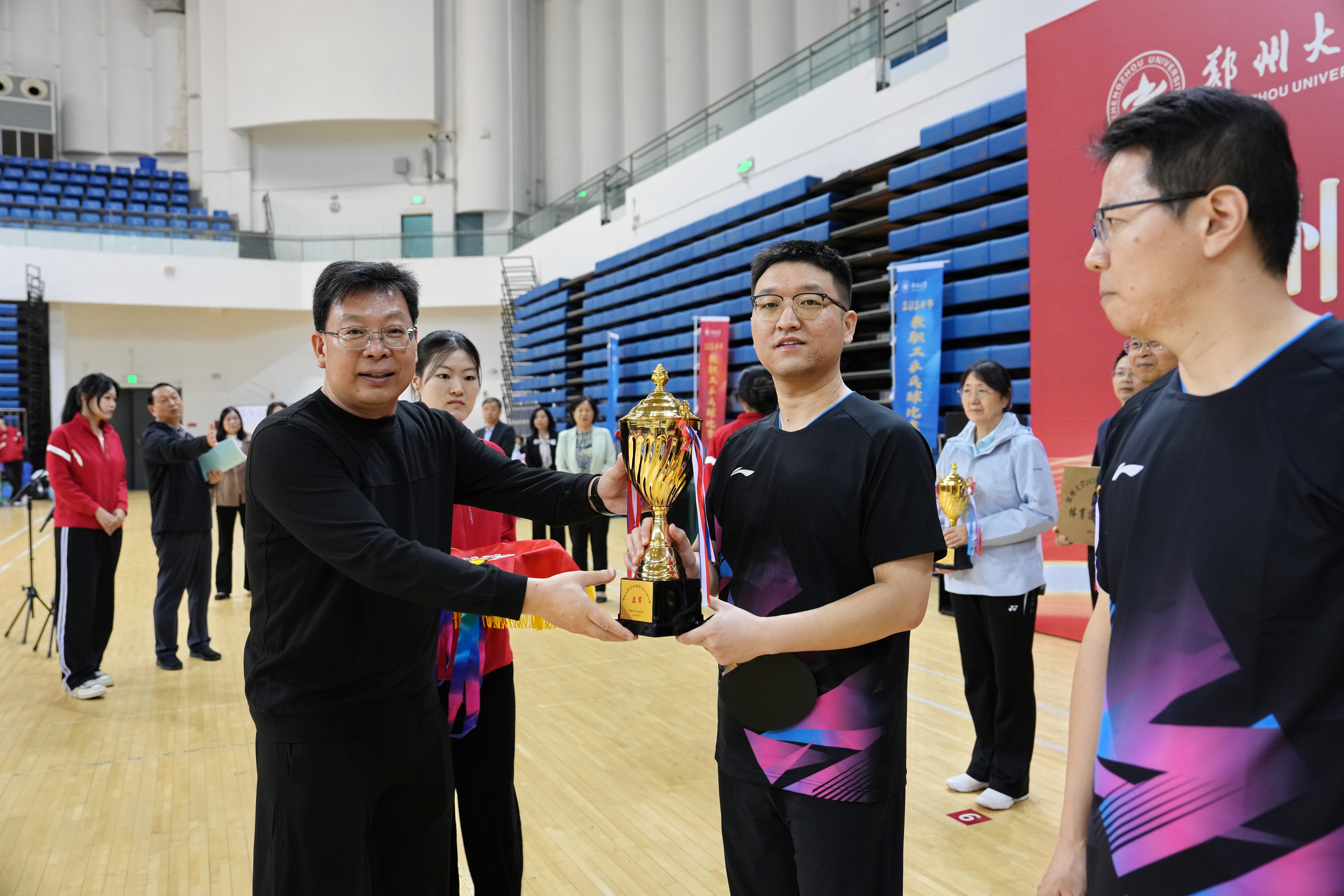 最终,第五附属医院代表队荣获团体赛冠军,第一附属医院代表队荣获团体赛亚军,资产经营有限责任公司代表队荣获团体赛季军;机械与动力工程学院、化学学院、图书馆、第二附属医院、电气与信息工程学院荣获团体赛第四至第八名。数学与统计学院、河南省医药科学研究院、外国语与国际关系学院、机关工会等16个单位获得体育道德风尚奖。