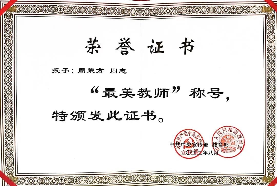 获全国“最美教师”荣誉称号