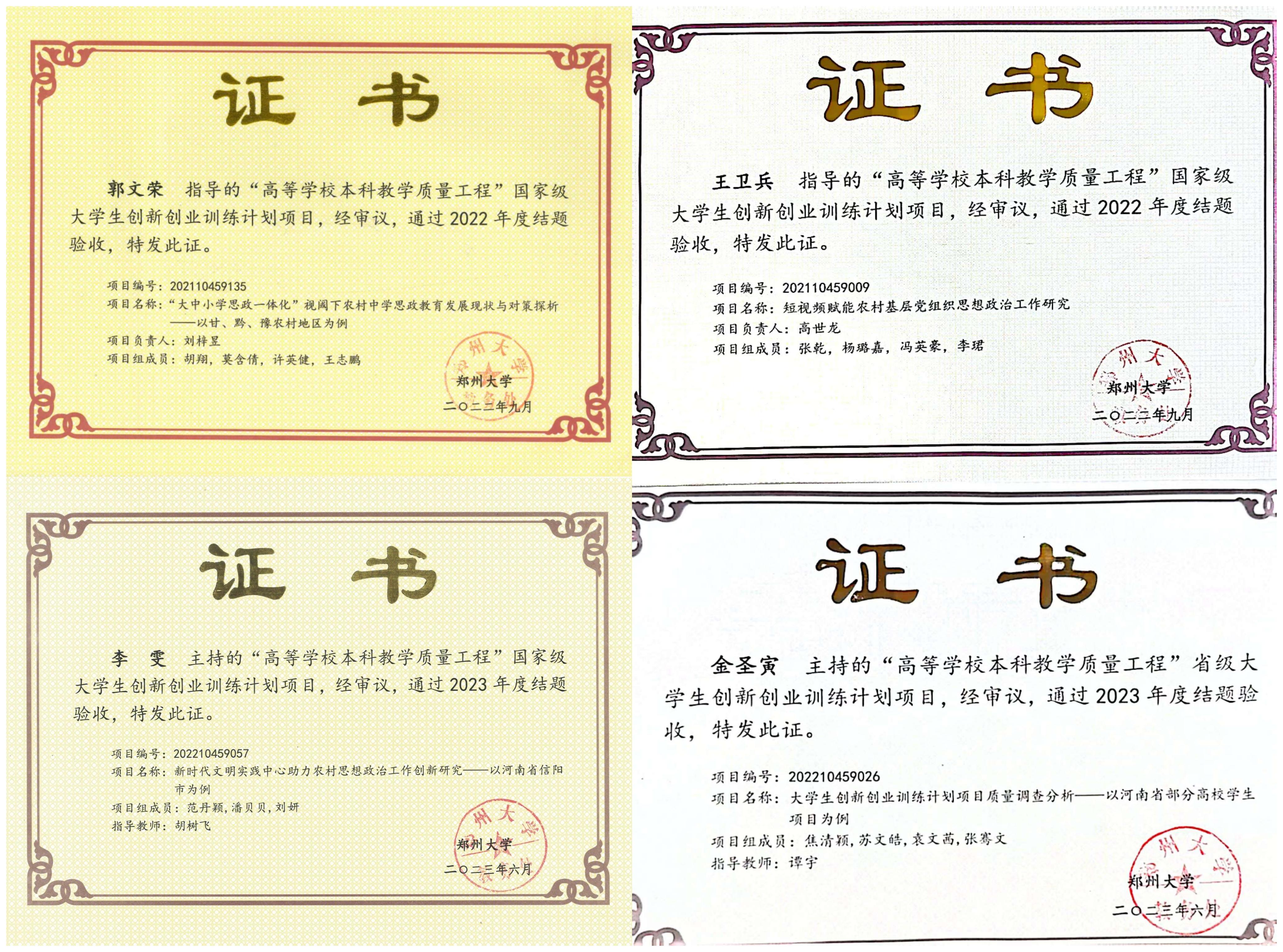 国家级、省级大学生创新创业训练计划项目