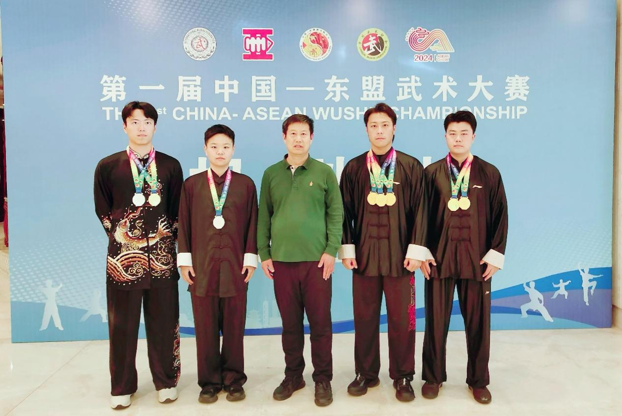 近日,由中国-东盟武术联合会、国家体育总局武术运动管理中心、中国武术协会主办,南通市人民政府承办的首届中国-东盟武术大赛在南通举行。来自中国和东盟的200支代表队共计1600余人参加本届大赛。pp电子官方网站武术队在教练刘红伟老师的带领下,4名运动员参赛,并取得了6金2银的优异成绩。